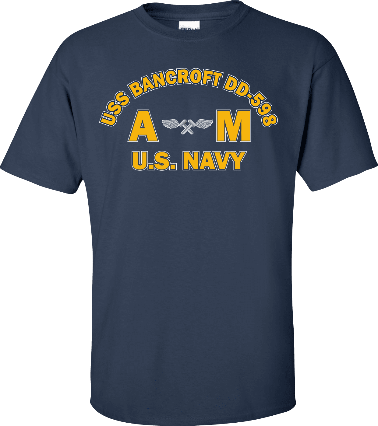 MilitaryBest is proud to offer this USS BANCROFT DD-598 Rate AM Aviation Structural Mechanic T-Shirt. This shirt is available as a 100% cotton t-shirt or a 100% polyester men’s or women’s moisture wicking t-shirt. Each shirt is proudly printed in the USA.