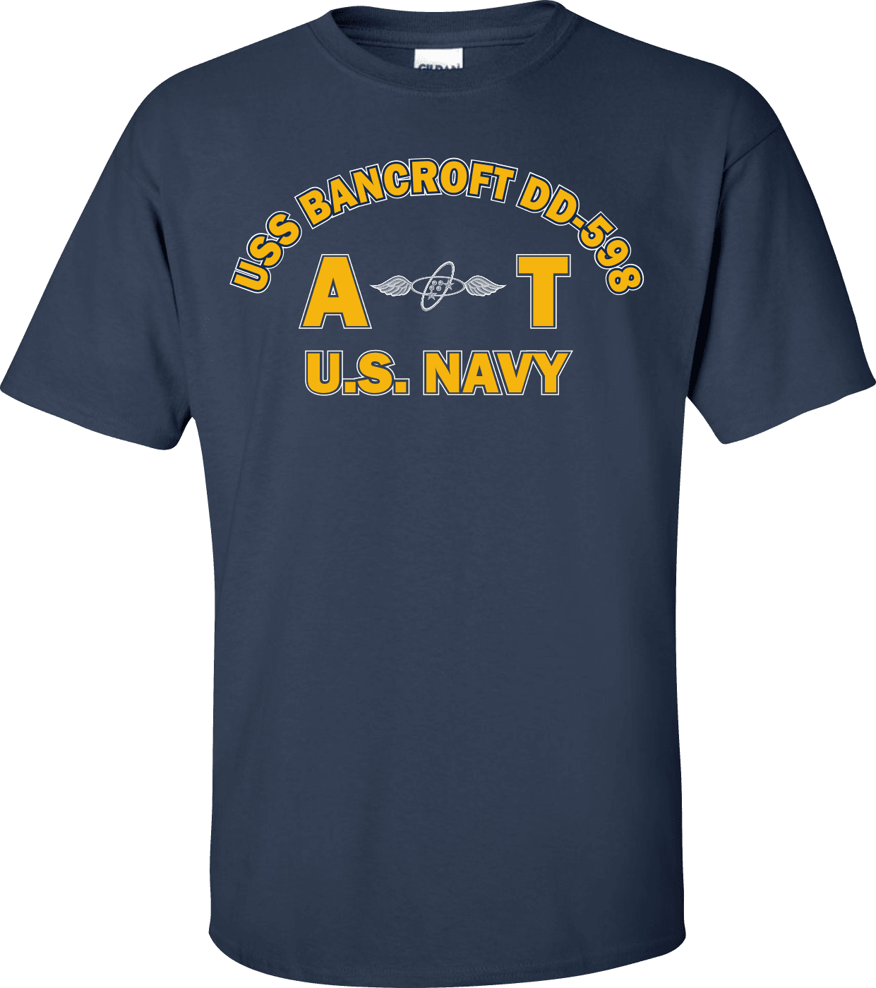 MilitaryBest is proud to offer this USS BANCROFT DD-598 Rate AT Aviation Electronics Technician T-Shirt. This shirt is available as a 100% cotton t-shirt or a 100% polyester men’s or women’s moisture wicking t-shirt. Each shirt is proudly printed in the USA.