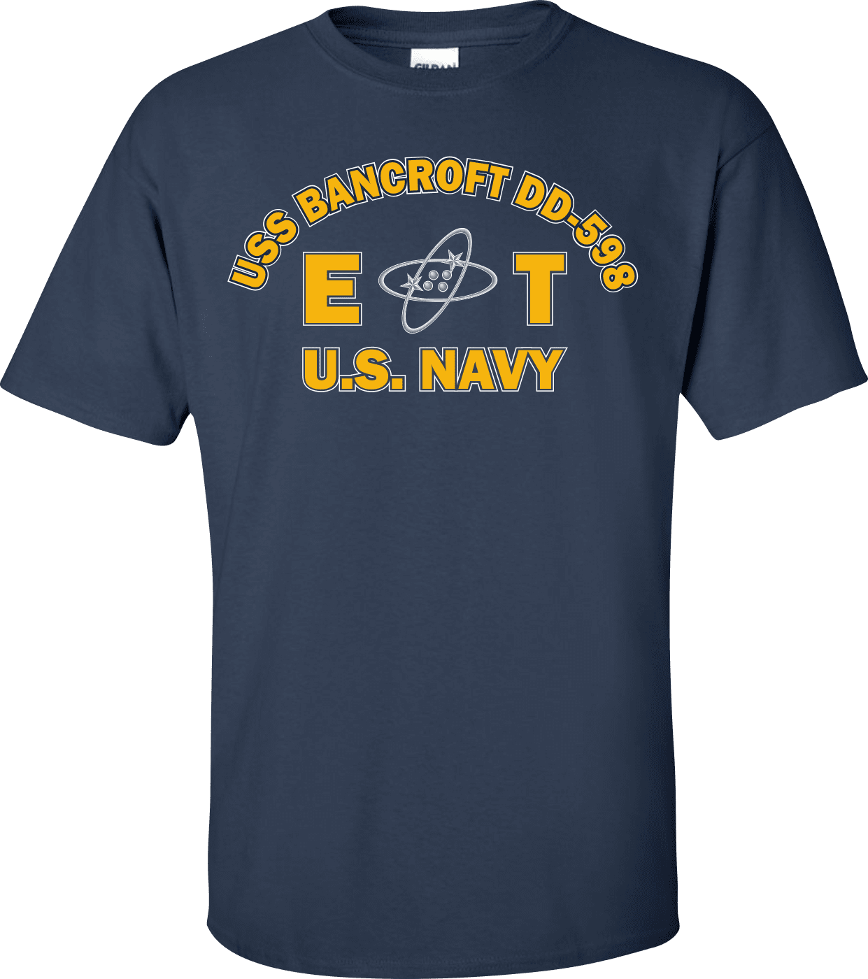 MilitaryBest is proud to offer this USS BANCROFT DD-598 Rate ET Electronics Technician T-Shirt. This shirt is available as a 100% cotton t-shirt or a 100% polyester men’s or women’s moisture wicking t-shirt. Each shirt is proudly printed in the USA.