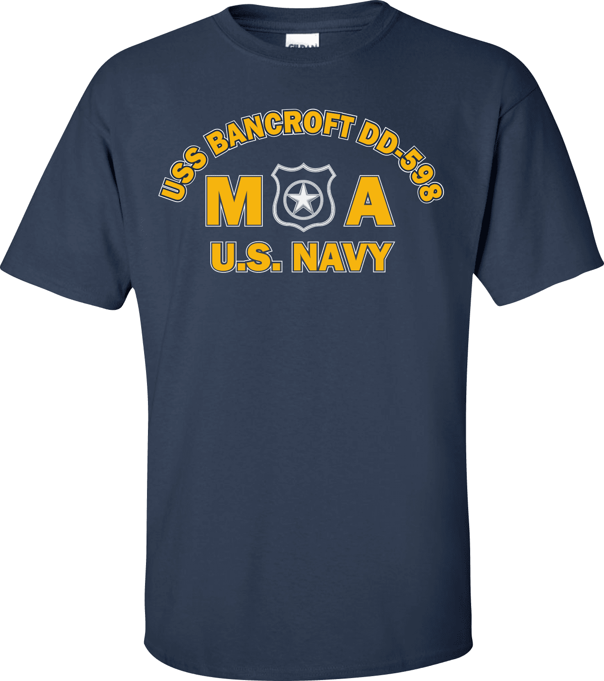 MilitaryBest is proud to offer this USS BANCROFT DD-598 Rate MA Master At Arms T-Shirt. This shirt is available as a 100% cotton t-shirt or a 100% polyester men’s or women’s moisture wicking t-shirt. Each shirt is proudly printed in the USA.