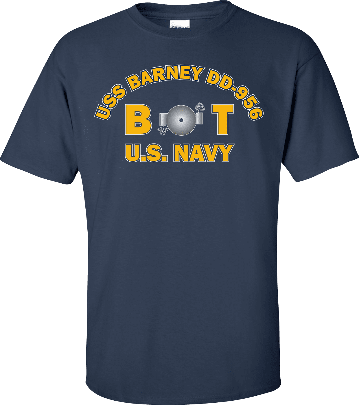 MilitaryBest is proud to offer this USS BARNEY DD-956 Rate BT Boiler Technician T-Shirt. This shirt is available as a 100% cotton t-shirt or a 100% polyester men’s or women’s moisture wicking t-shirt. Each shirt is proudly printed in the USA.
