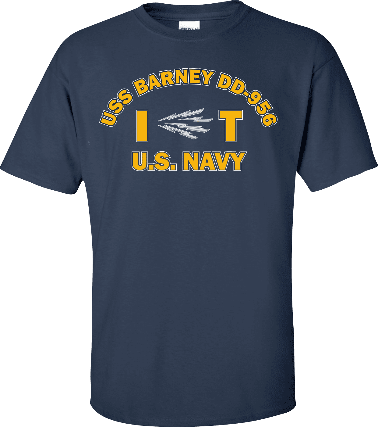 MilitaryBest is proud to offer this USS BARNEY DD-956 Rate IT Information Systems Technician T-Shirt. This shirt is available as a 100% cotton t-shirt or a 100% polyester men’s or women’s moisture wicking t-shirt. Each shirt is proudly printed in the USA.