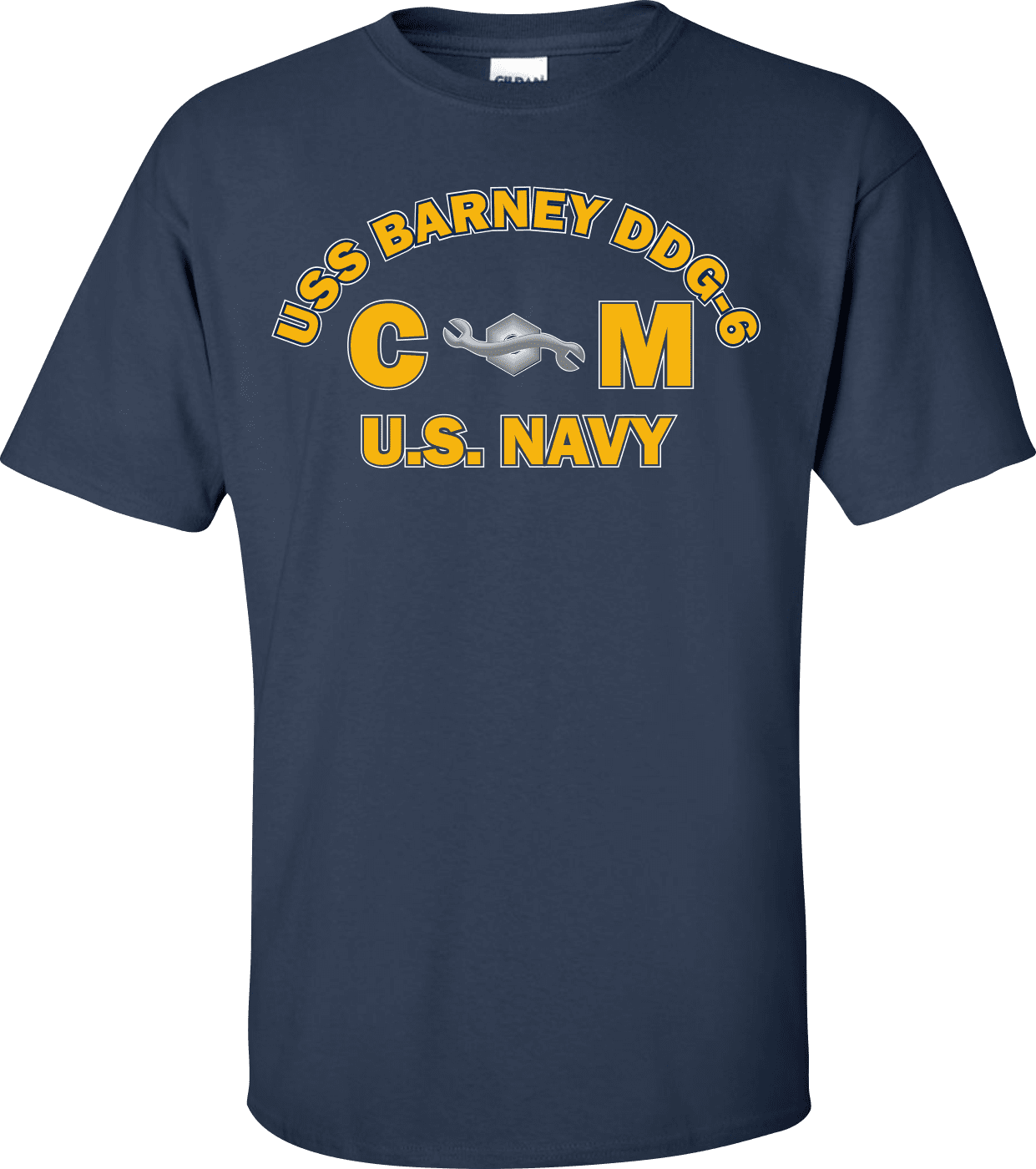 MilitaryBest is proud to offer this USS BARNEY DDG-6 Rate CM Construction Mechanic T-Shirt. This shirt is available as a 100% cotton t-shirt or a 100% polyester men’s or women’s moisture wicking t-shirt. Each shirt is proudly printed in the USA.