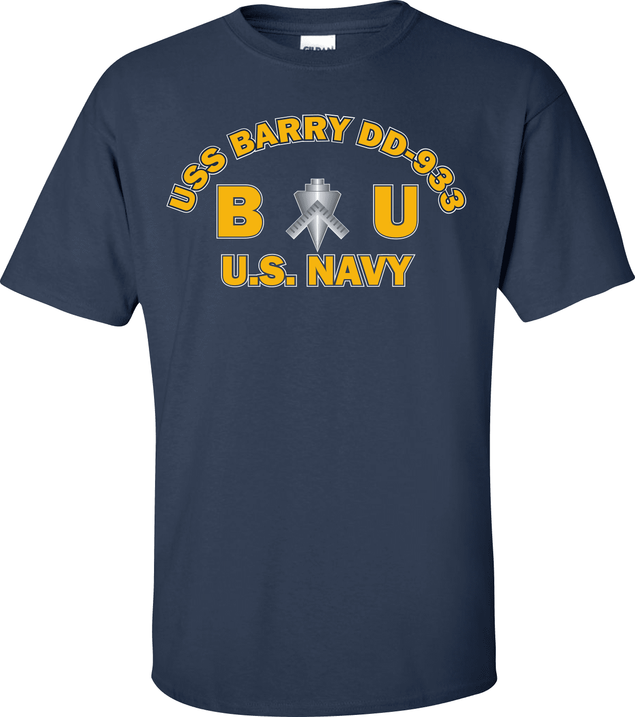 MilitaryBest is proud to offer this USS BARRY DD-933 Rate BU Builder T-Shirt. This shirt is available as a 100% cotton t-shirt or a 100% polyester men’s or women’s moisture wicking t-shirt. Each shirt is proudly printed in the USA.