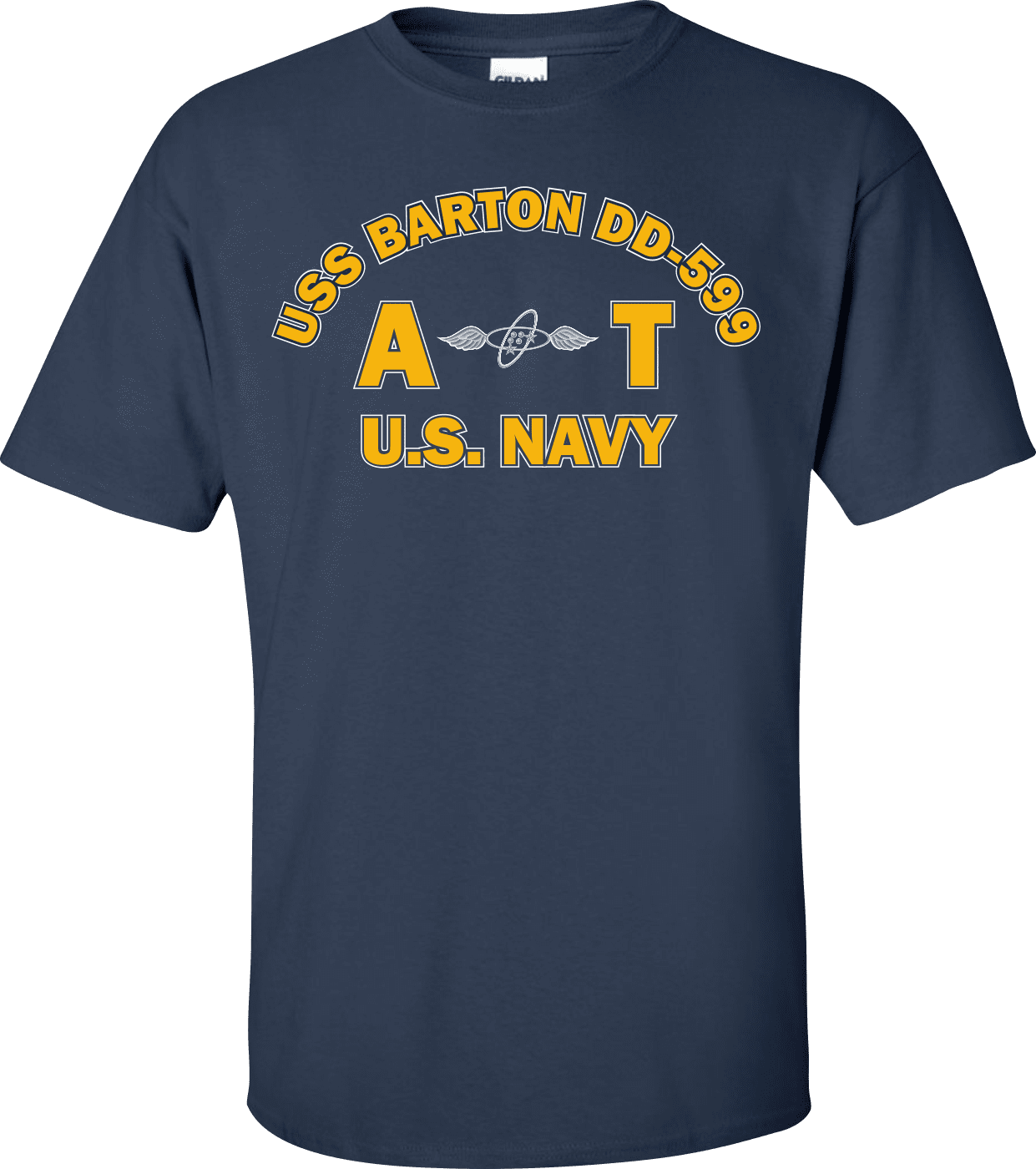 MilitaryBest is proud to offer this USS BARTON DD-599 Rate AT Aviation Electronics Technician T-Shirt. This shirt is available as a 100% cotton t-shirt or a 100% polyester men’s or women’s moisture wicking t-shirt. Each shirt is proudly printed in the USA.