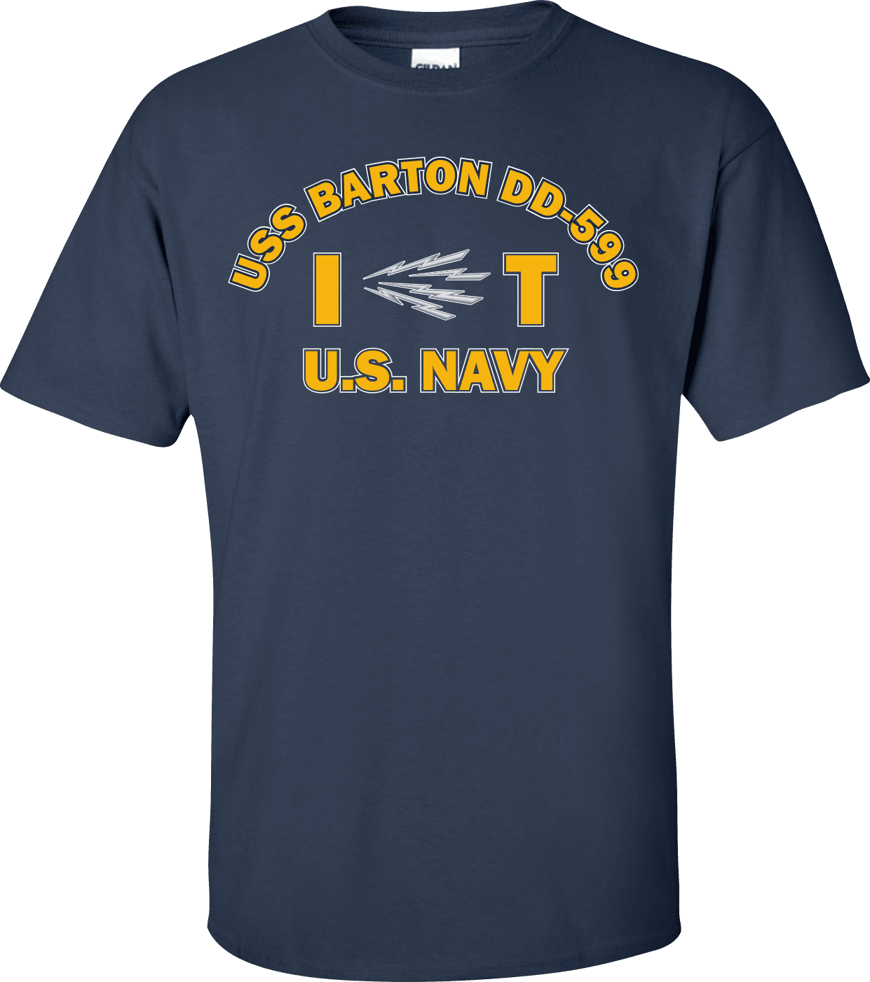 MilitaryBest is proud to offer this USS BARTON DD-599 Rate IT Information Systems Technician T-Shirt. This shirt is available as a 100% cotton t-shirt or a 100% polyester men’s or women’s moisture wicking t-shirt. Each shirt is proudly printed in the USA.