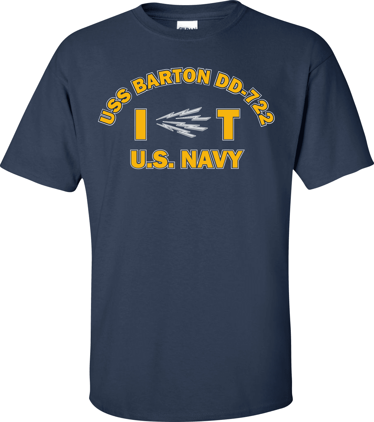 MilitaryBest is proud to offer this USS BARTON DD-722 Rate IT Information Systems Technician T-Shirt. This shirt is available as a 100% cotton t-shirt or a 100% polyester men’s or women’s moisture wicking t-shirt. Each shirt is proudly printed in the USA.
