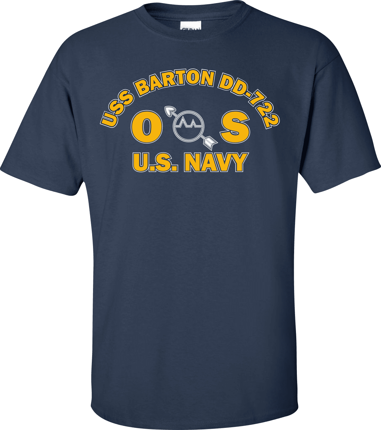 MilitaryBest is proud to offer this USS BARTON DD-722 Rate OS Operations Specialist T-Shirt. This shirt is available as a 100% cotton t-shirt or a 100% polyester men’s or women’s moisture wicking t-shirt. Each shirt is proudly printed in the USA.