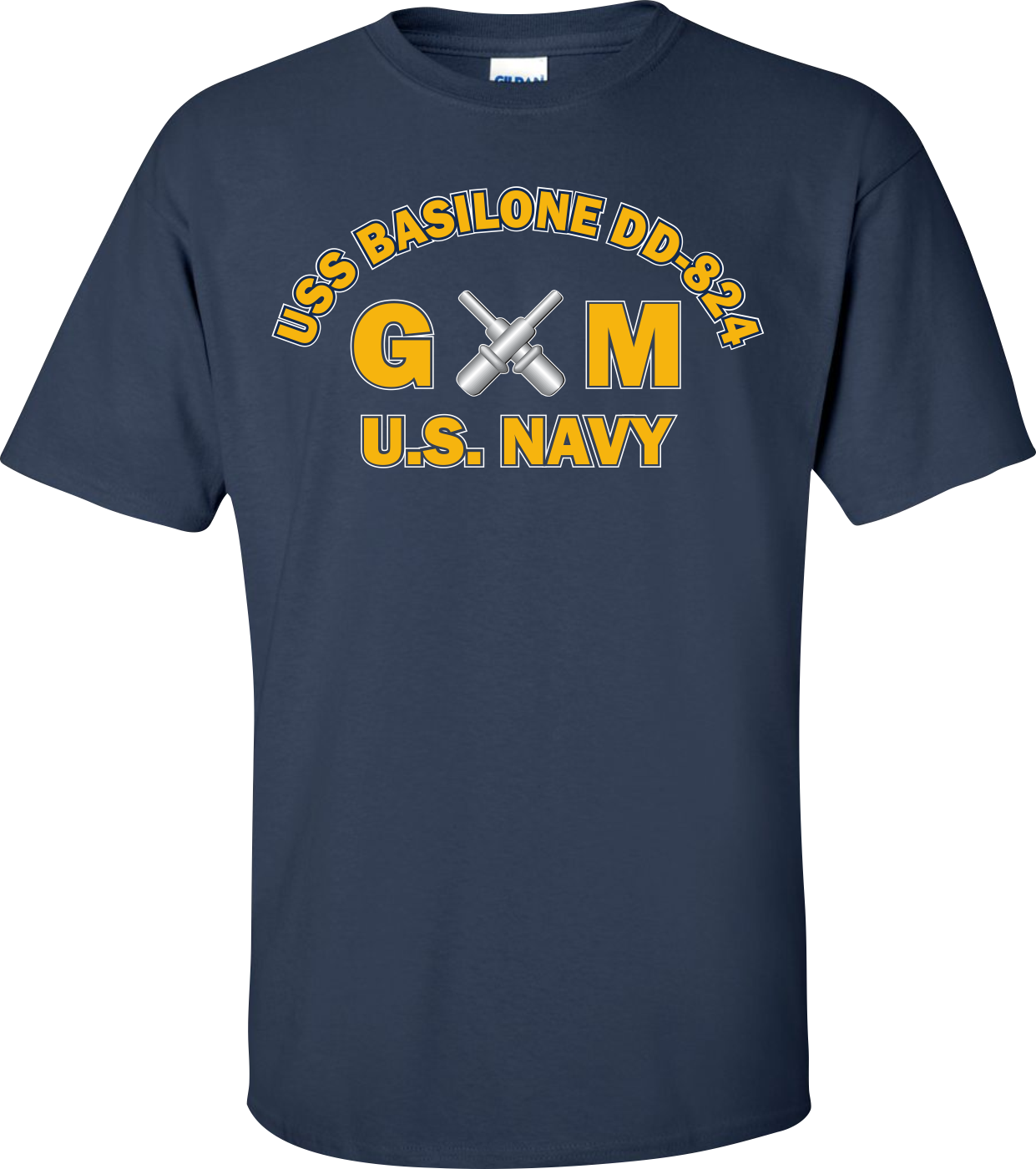 MilitaryBest is proud to offer this USS BASILONE DD-824 Rate GM Gunners Mate T-Shirt. This shirt is available as a 100% cotton t-shirt or a 100% polyester men’s or women’s moisture wicking t-shirt. Each shirt is proudly printed in the USA.