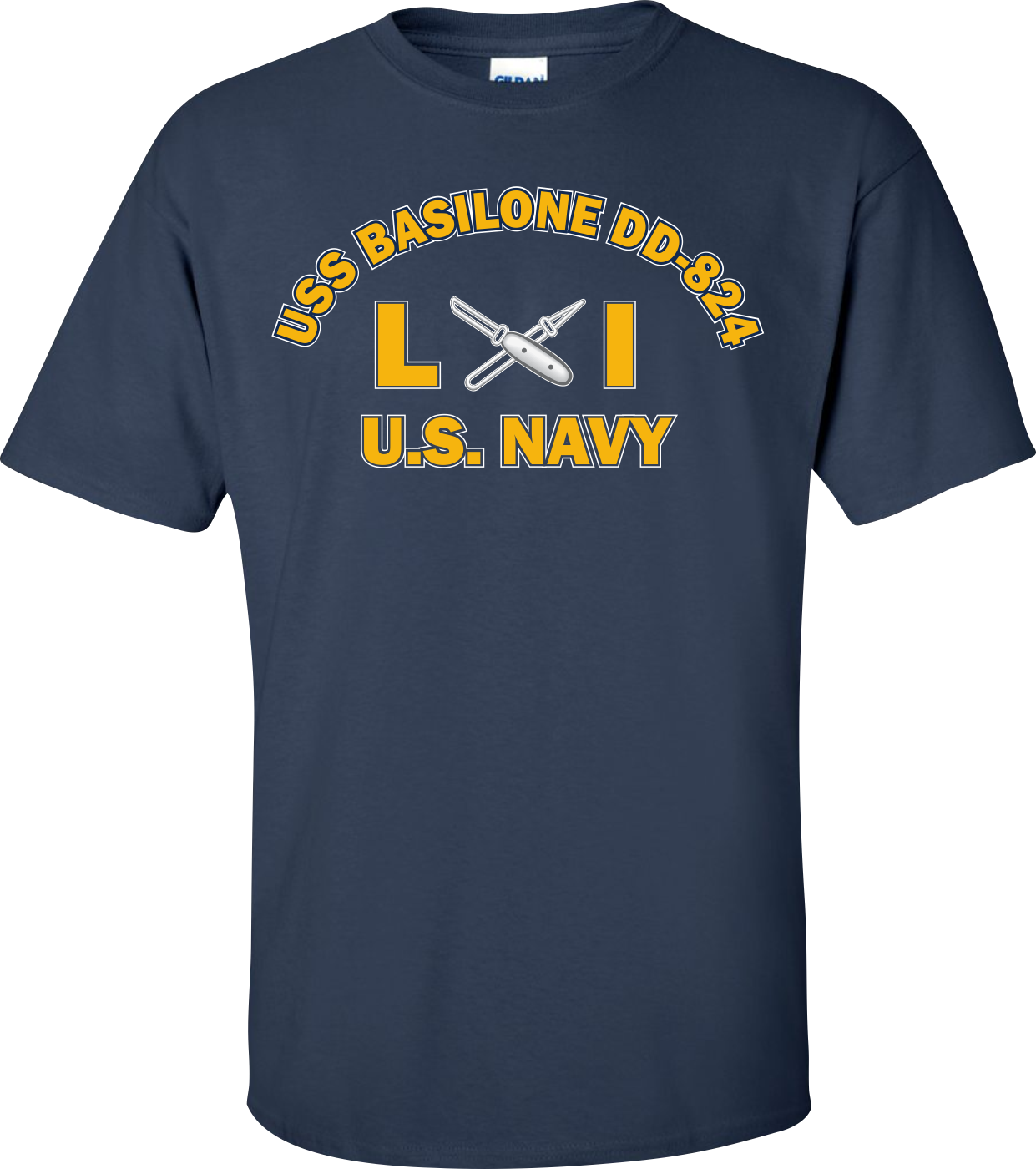 MilitaryBest is proud to offer this USS BASILONE DD-824 Rate LI Lithographer T-Shirt. This shirt is available as a 100% cotton t-shirt or a 100% polyester men’s or women’s moisture wicking t-shirt. Each shirt is proudly printed in the USA.
