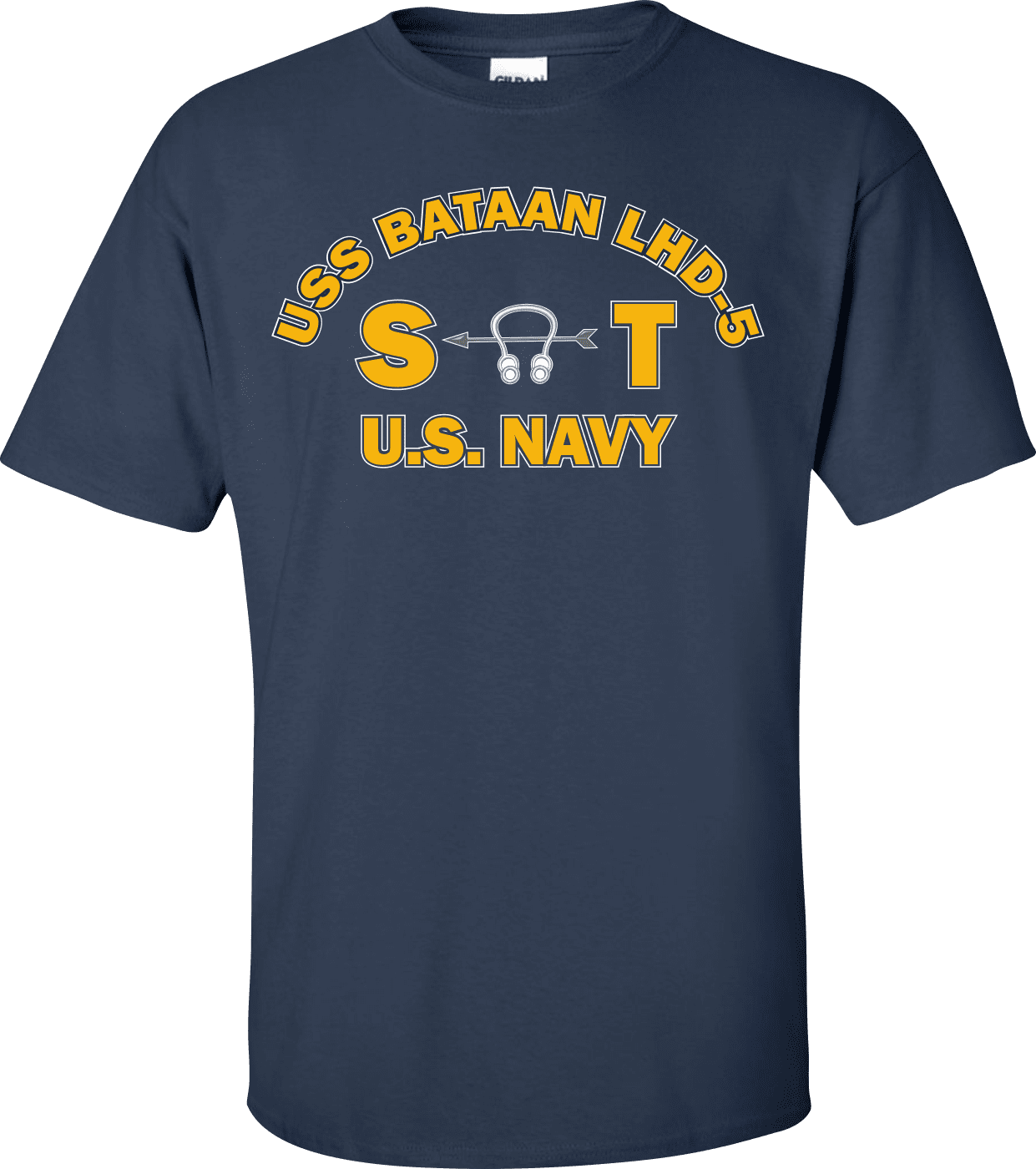 MilitaryBest is proud to offer this USS BATAAN LHD-5 Rate ST Sonar Technician T-Shirt. This shirt is available as a 100% cotton t-shirt or a 100% polyester men’s or women’s moisture wicking t-shirt. Each shirt is proudly printed in the USA.