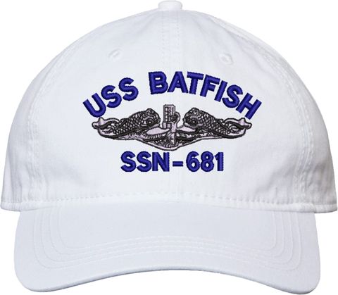 Show your Navy pride with this USS Batfish SSN-681 with Dolphins Unstructured Dad Cap from MilitaryBest. Crafted from 100% washed chino twill cotton, this six-panel, low-profile cap offers a relaxed and comfortable fit. Featuring high-quality embroidery done in our Scottsboro, Alabama facility, this cap is designed with a pre-curved visor and an adjustable tri-glide buckle closure for a perfect fit. Whether for everyday wear or as a meaningful gift, this cap is a great way to honor your own or a loved one's service.For caps ordered with custom embroidered personalized text please allow an additional 3 to 5 days production time. All custom back text will be embroidered in ALL CAPITAL LETTERS. Caps with back text or eggs are non-returnable unless there is a material defect in the cap.