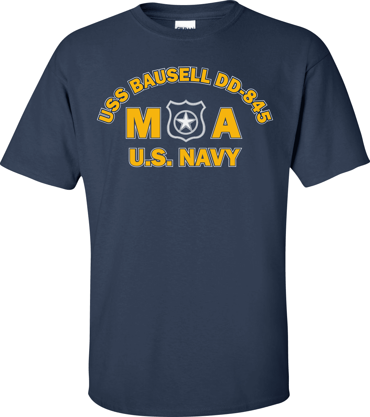MilitaryBest is proud to offer this USS BAUSELL DD-845 Rate MA Master At Arms T-Shirt. This shirt is available as a 100% cotton t-shirt or a 100% polyester men’s or women’s moisture wicking t-shirt. Each shirt is proudly printed in the USA.