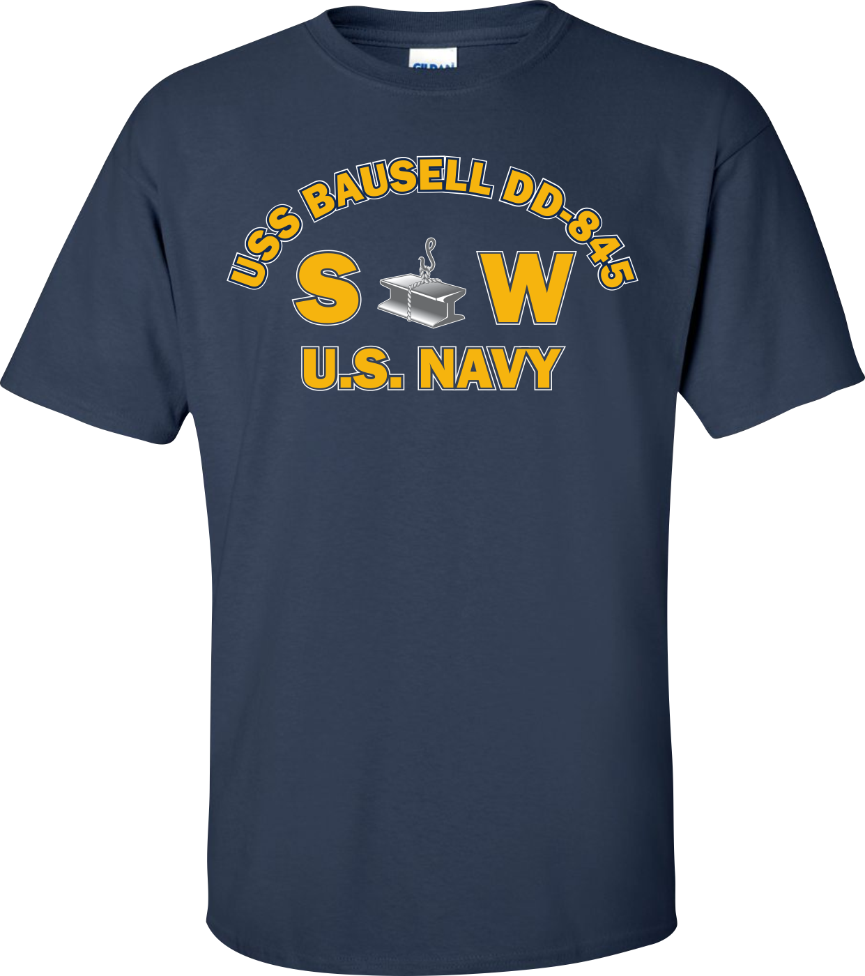 MilitaryBest is proud to offer this USS BAUSELL DD-845 Rate SW Steelworker T-Shirt. This shirt is available as a 100% cotton t-shirt or a 100% polyester men’s or women’s moisture wicking t-shirt. Each shirt is proudly printed in the USA.