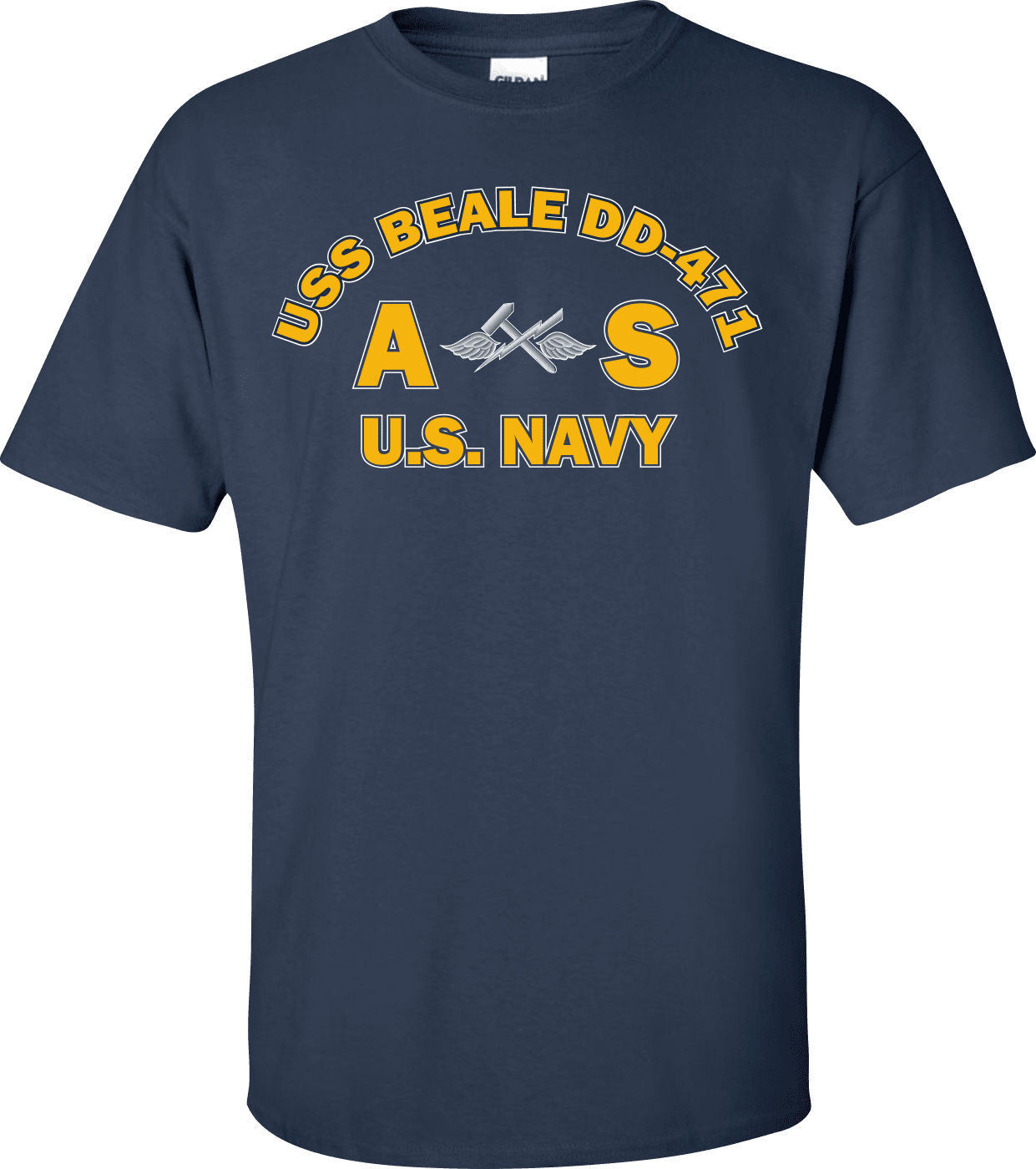 MilitaryBest is proud to offer this USS BEALE DD-471 Rate AS Aviation Support Equipment Technician T-Shirt. This shirt is available as a 100% cotton t-shirt or a 100% polyester men’s or women’s moisture wicking t-shirt. Each shirt is proudly printed in the USA.