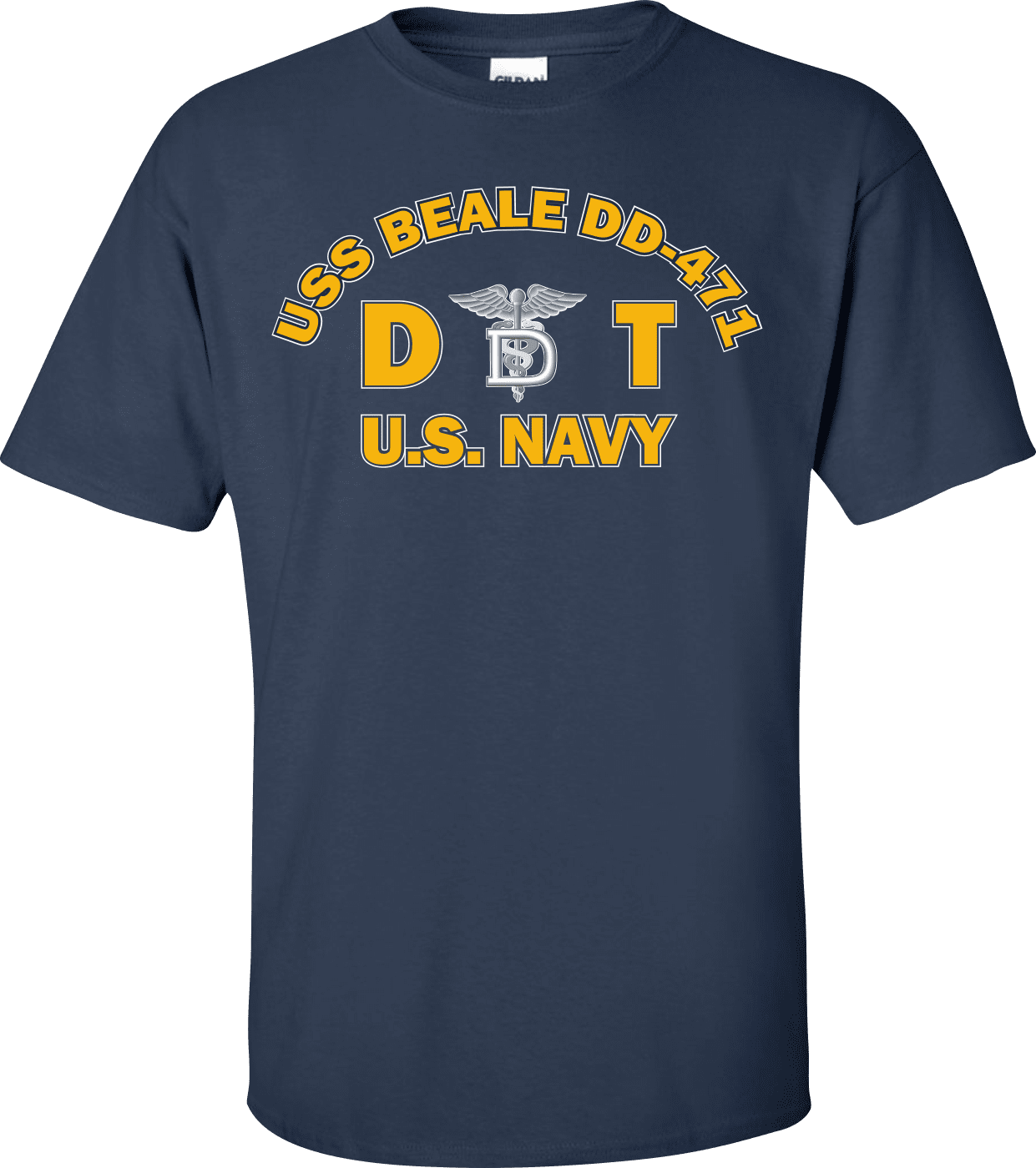 MilitaryBest is proud to offer this USS BEALE DD-471 Rate DT Dental Technician T-Shirt. This shirt is available as a 100% cotton t-shirt or a 100% polyester men’s or women’s moisture wicking t-shirt. Each shirt is proudly printed in the USA.