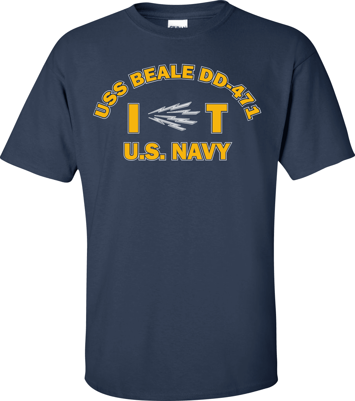 MilitaryBest is proud to offer this USS BEALE DD-471 Rate IT Information Systems Technician T-Shirt. This shirt is available as a 100% cotton t-shirt or a 100% polyester men’s or women’s moisture wicking t-shirt. Each shirt is proudly printed in the USA.