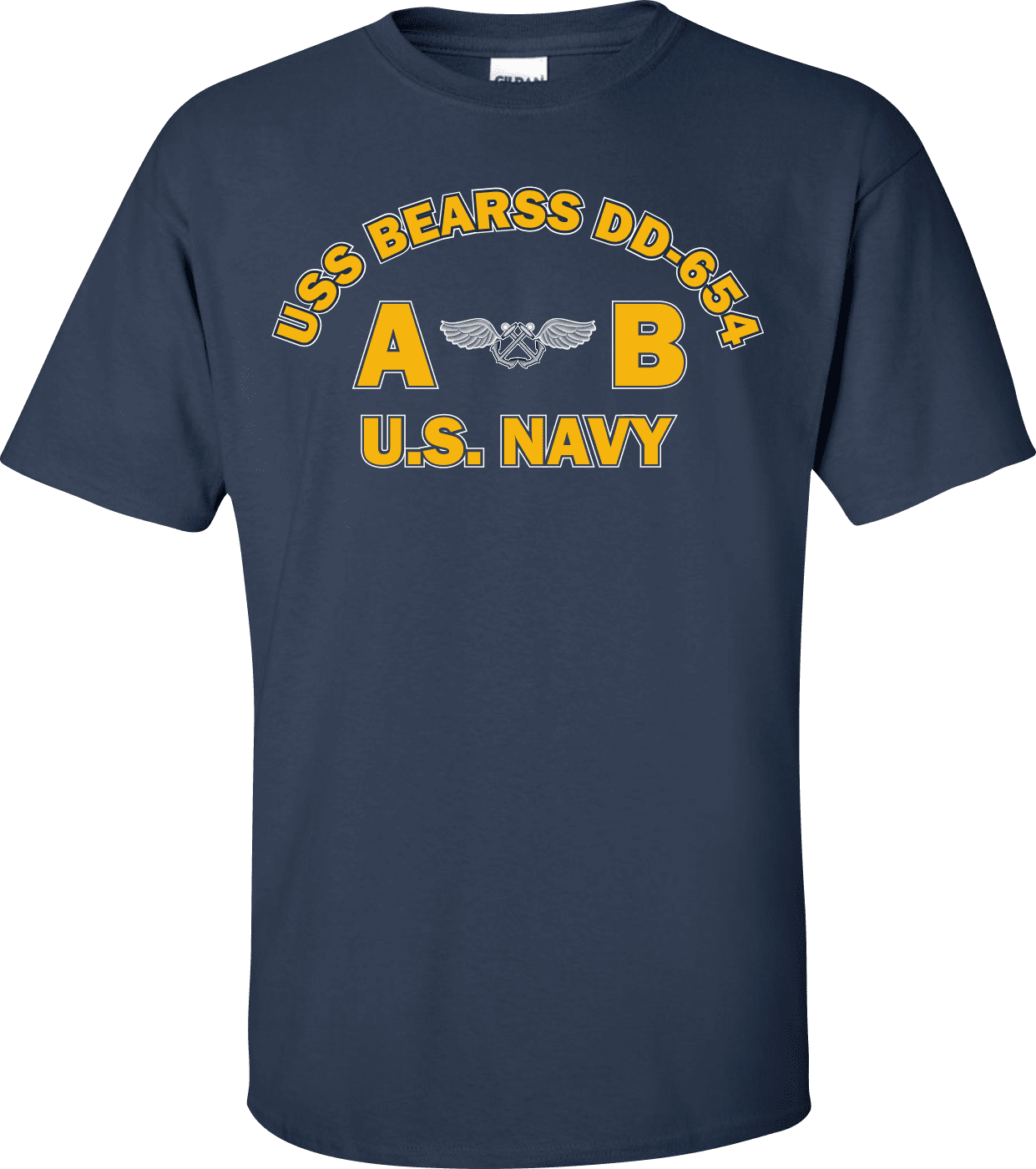 MilitaryBest is proud to offer this USS BEARSS DD-654 Rate AB Aviation Boatswains Mate T-Shirt. This shirt is available as a 100% cotton t-shirt or a 100% polyester men’s or women’s moisture wicking t-shirt. Each shirt is proudly printed in the USA.