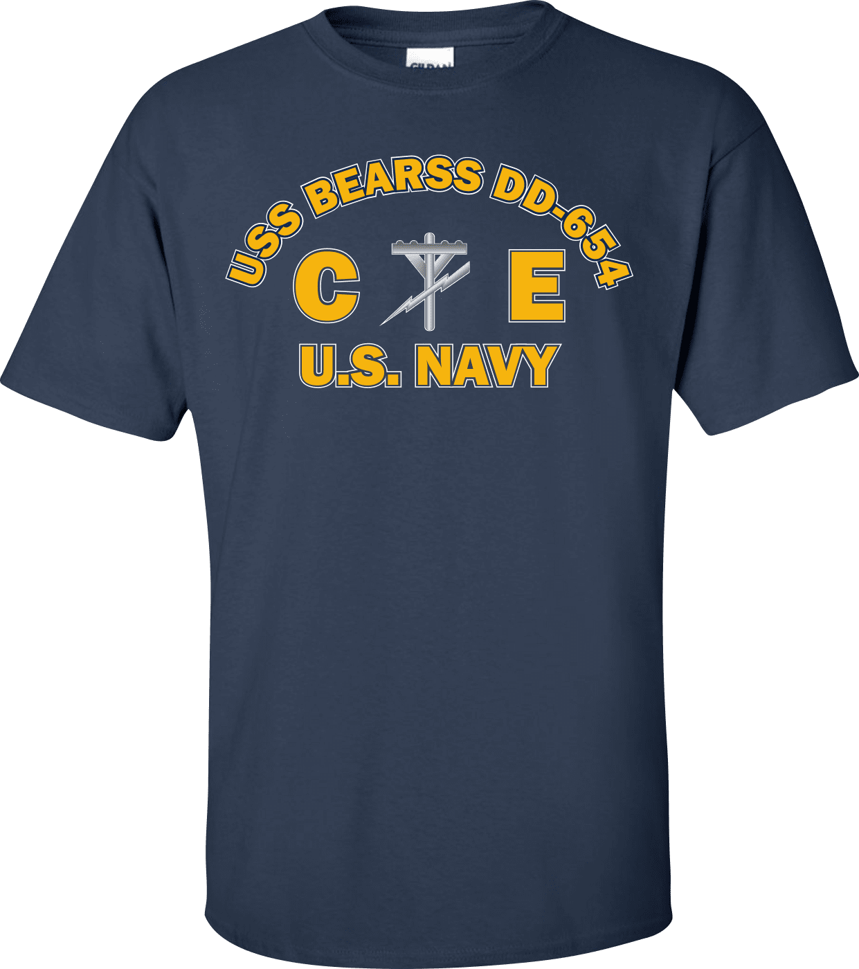 MilitaryBest is proud to offer this USS BEARSS DD-654 Rate CE Construction Electrician T-Shirt. This shirt is available as a 100% cotton t-shirt or a 100% polyester men’s or women’s moisture wicking t-shirt. Each shirt is proudly printed in the USA.