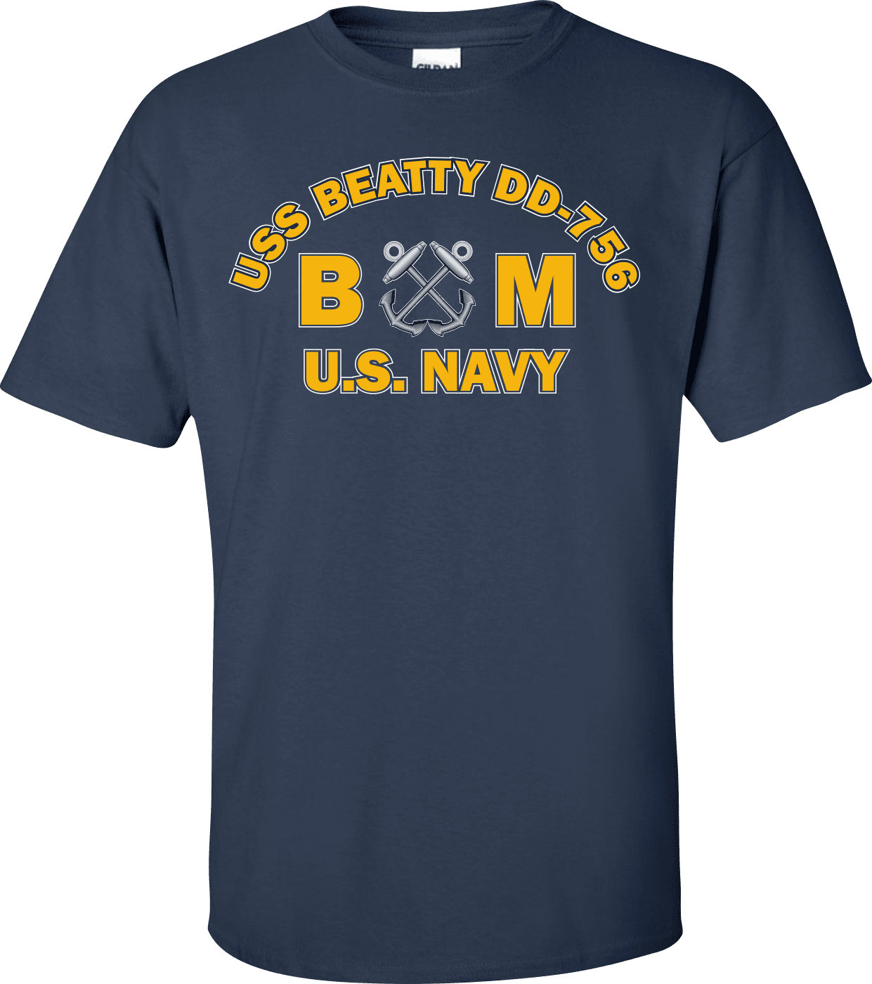 MilitaryBest is proud to offer this USS BEATTY DD-756 Rate BM Boatswains Mate T-Shirt. This shirt is available as a 100% cotton t-shirt or a 100% polyester men’s or women’s moisture wicking t-shirt. Each shirt is proudly printed in the USA.