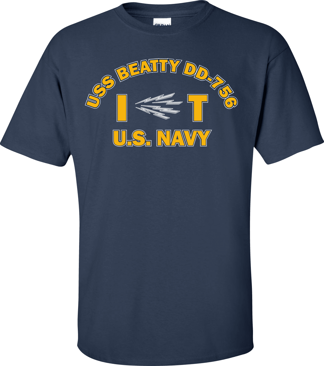 MilitaryBest is proud to offer this USS BEATTY DD-756 Rate IT Information Systems Technician T-Shirt. This shirt is available as a 100% cotton t-shirt or a 100% polyester men’s or women’s moisture wicking t-shirt. Each shirt is proudly printed in the USA.