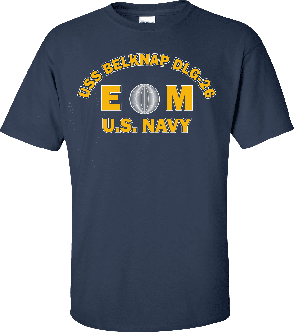 MilitaryBest is proud to offer this USS BELKNAP DLG-26 Rate EM Electricians Mate T-Shirt. This shirt is available as a 100% cotton t-shirt or a 100% polyester men’s or women’s moisture wicking t-shirt. Each shirt is proudly printed in the USA.