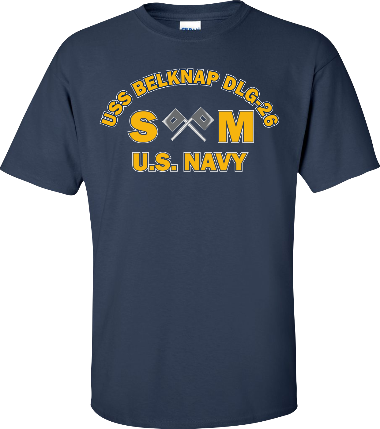 MilitaryBest is proud to offer this USS BELKNAP DLG-26 Rate SM Signalman T-Shirt. This shirt is available as a 100% cotton t-shirt or a 100% polyester men’s or women’s moisture wicking t-shirt. Each shirt is proudly printed in the USA.