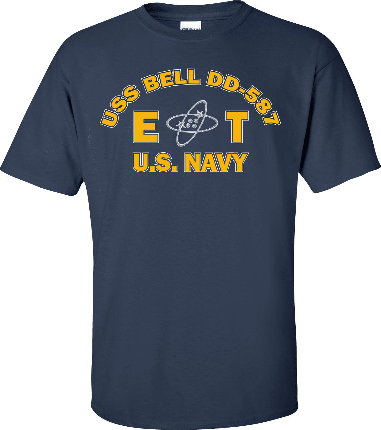 MilitaryBest is proud to offer this USS BELL DD-587 Rate ET Electronics Technician T-Shirt. This shirt is available as a 100% cotton t-shirt or a 100% polyester men’s or women’s moisture wicking t-shirt. Each shirt is proudly printed in the USA.