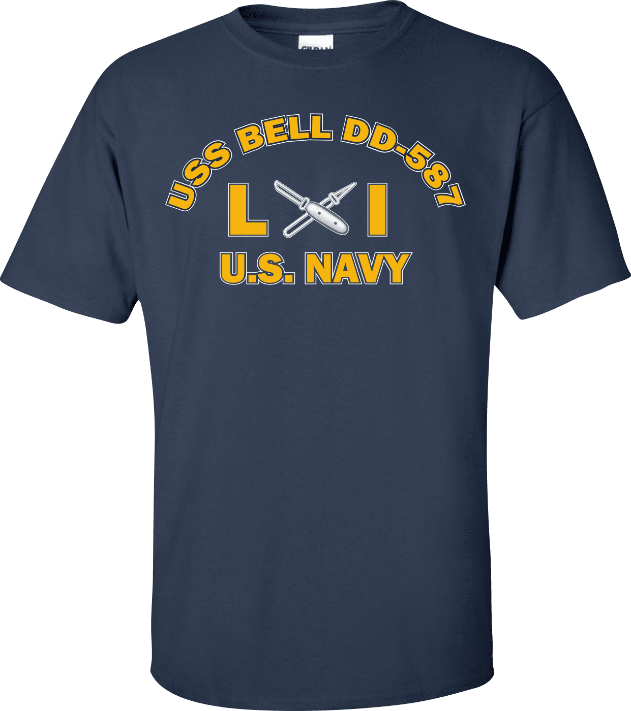 MilitaryBest is proud to offer this USS BELL DD-587 Rate LI Lithographer T-Shirt. This shirt is available as a 100% cotton t-shirt or a 100% polyester men’s or women’s moisture wicking t-shirt. Each shirt is proudly printed in the USA.