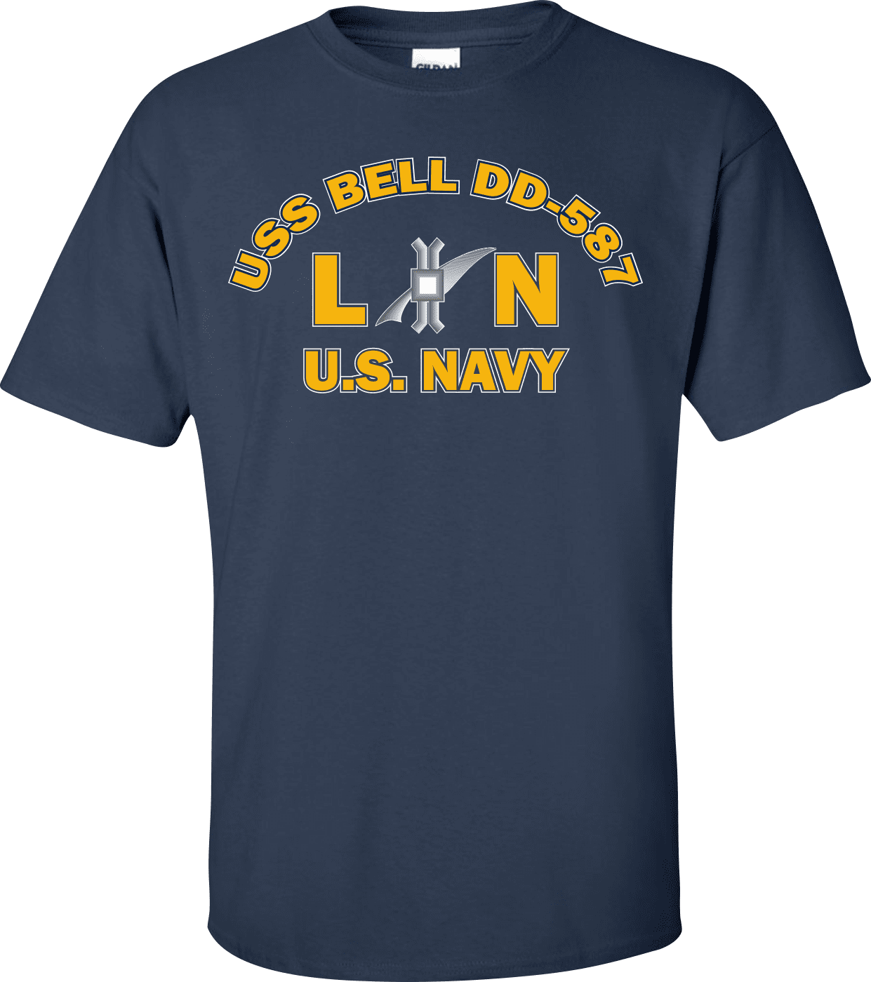 MilitaryBest is proud to offer this USS BELL DD-587 Rate LN Legalman T-Shirt. This shirt is available as a 100% cotton t-shirt or a 100% polyester men’s or women’s moisture wicking t-shirt. Each shirt is proudly printed in the USA.