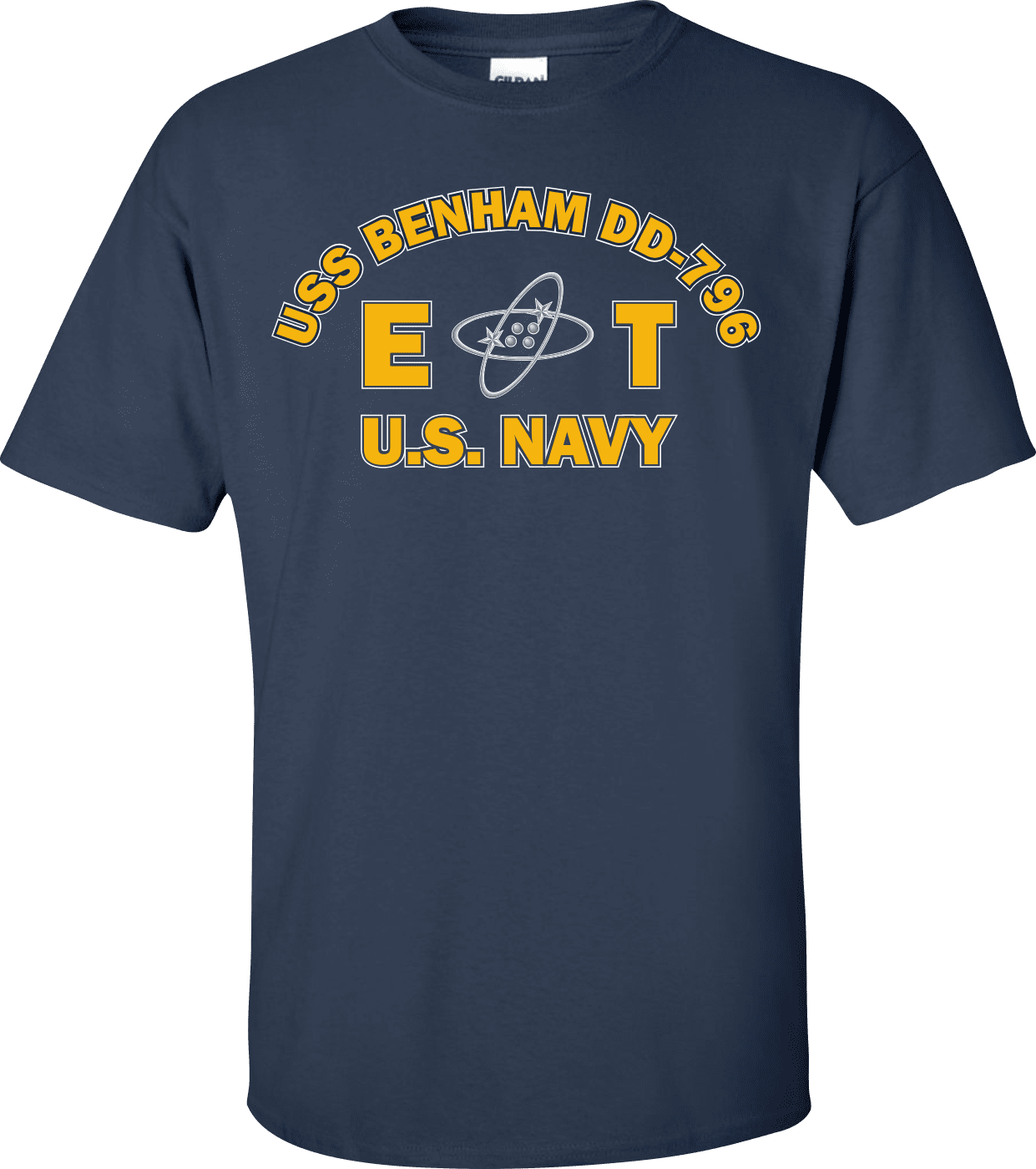 MilitaryBest is proud to offer this USS BENHAM DD-796 Rate ET Electronics Technician T-Shirt. This shirt is available as a 100% cotton t-shirt or a 100% polyester men’s or women’s moisture wicking t-shirt. Each shirt is proudly printed in the USA.