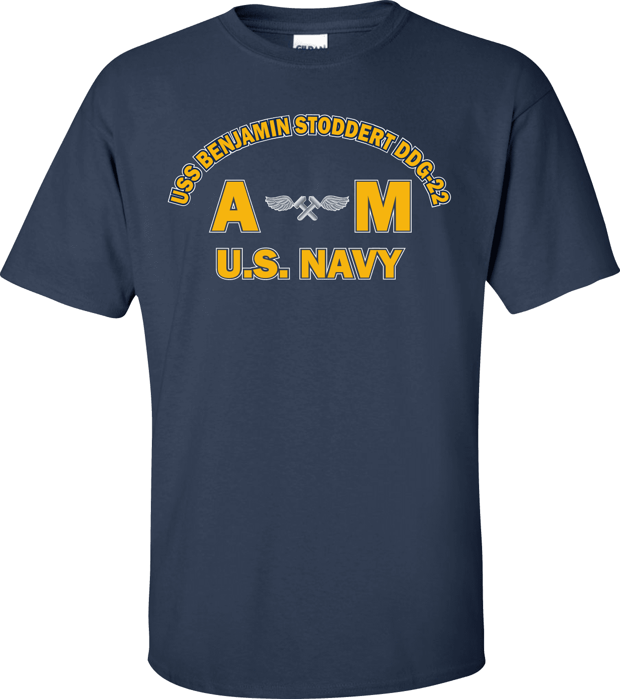 MilitaryBest is proud to offer this USS BENJAMIN STODDERT DDG-22 Rate AM Aviation Structural Mechanic T-Shirt. This shirt is available as a 100% cotton t-shirt or a 100% polyester men’s or women’s moisture wicking t-shirt. Each shirt is proudly printed in the USA.