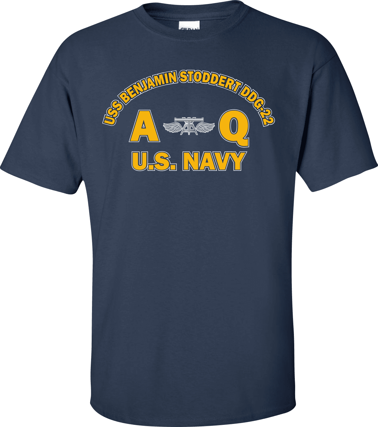 MilitaryBest is proud to offer this USS BENJAMIN STODDERT DDG-22 Rate AQ Aviation Fire Control Technician T-Shirt. This shirt is available as a 100% cotton t-shirt or a 100% polyester men’s or women’s moisture wicking t-shirt. Each shirt is proudly printed in the USA.