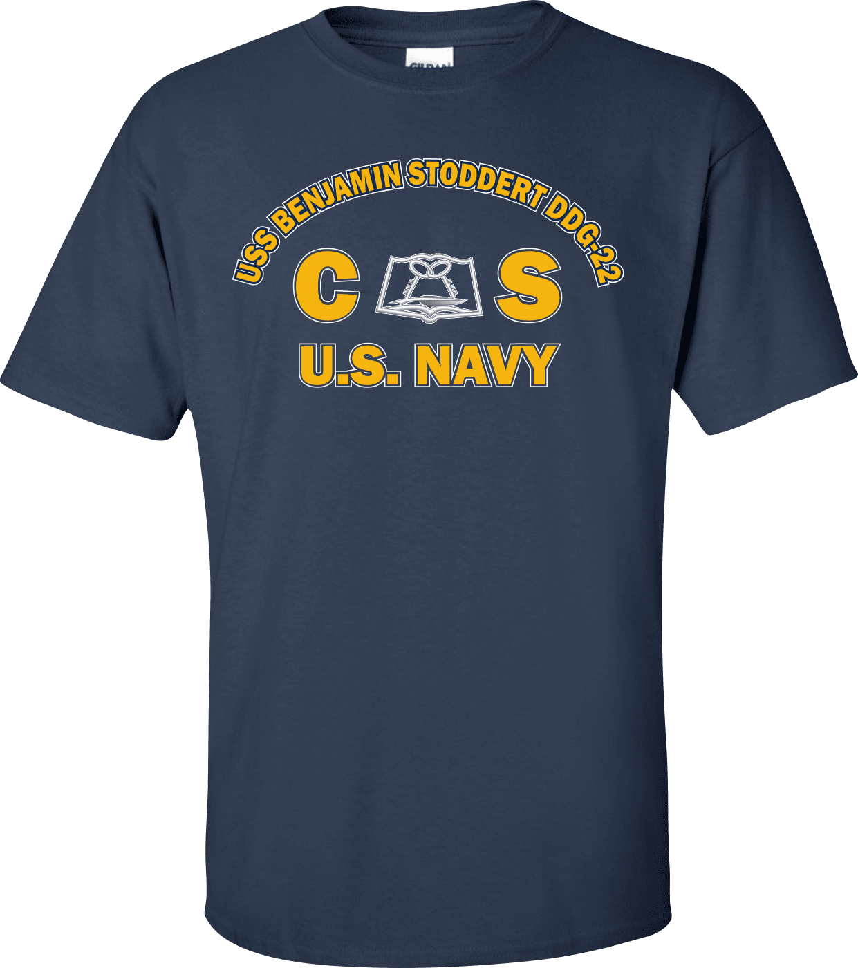 MilitaryBest is proud to offer this USS BENJAMIN STODDERT DDG-22 Rate CS Culinary Specialist T-Shirt. This shirt is available as a 100% cotton t-shirt or a 100% polyester men’s or women’s moisture wicking t-shirt. Each shirt is proudly printed in the USA.