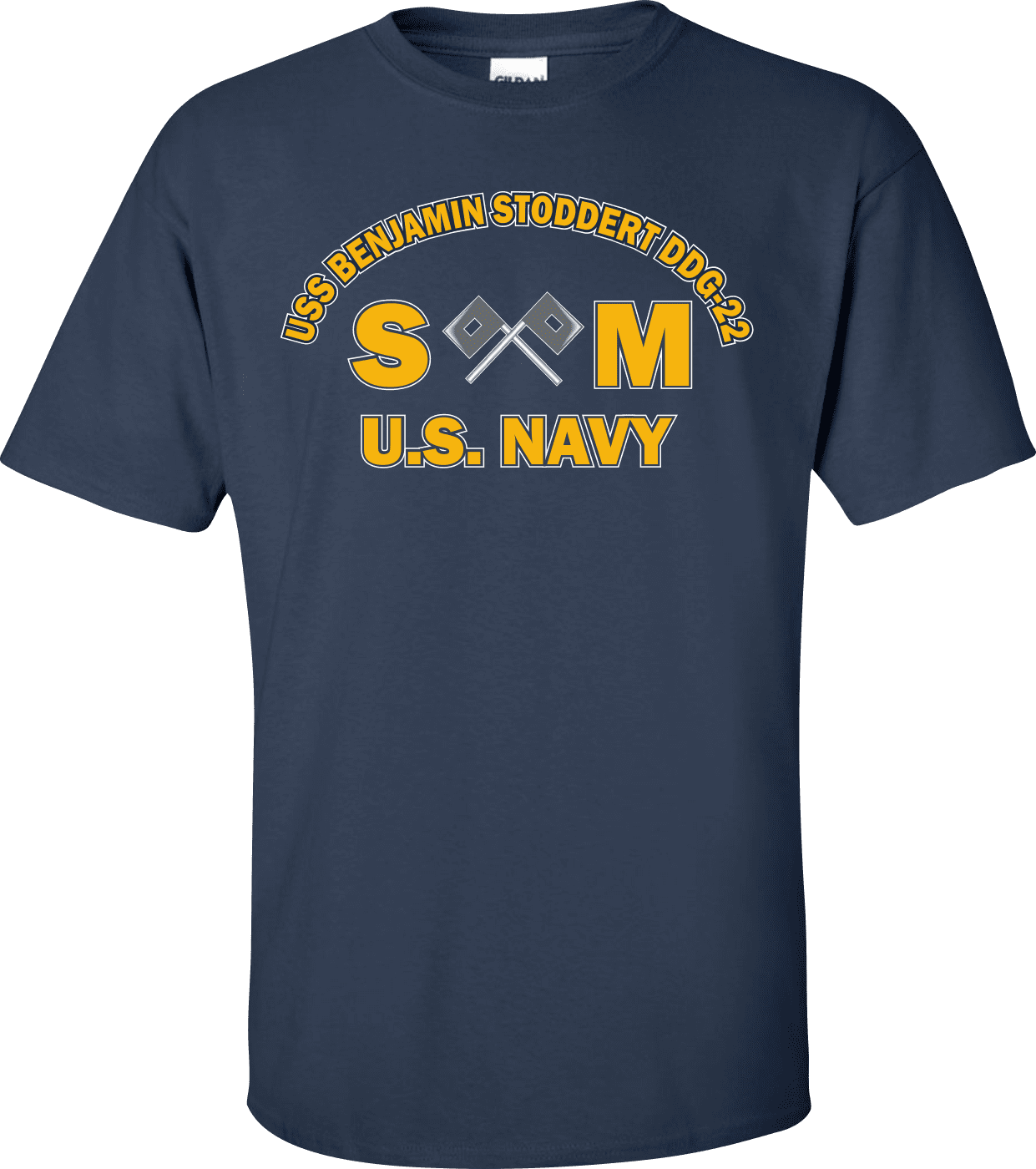 MilitaryBest is proud to offer this USS BENJAMIN STODDERT DDG-22 Rate SM Signalman T-Shirt. This shirt is available as a 100% cotton t-shirt or a 100% polyester men’s or women’s moisture wicking t-shirt. Each shirt is proudly printed in the USA.