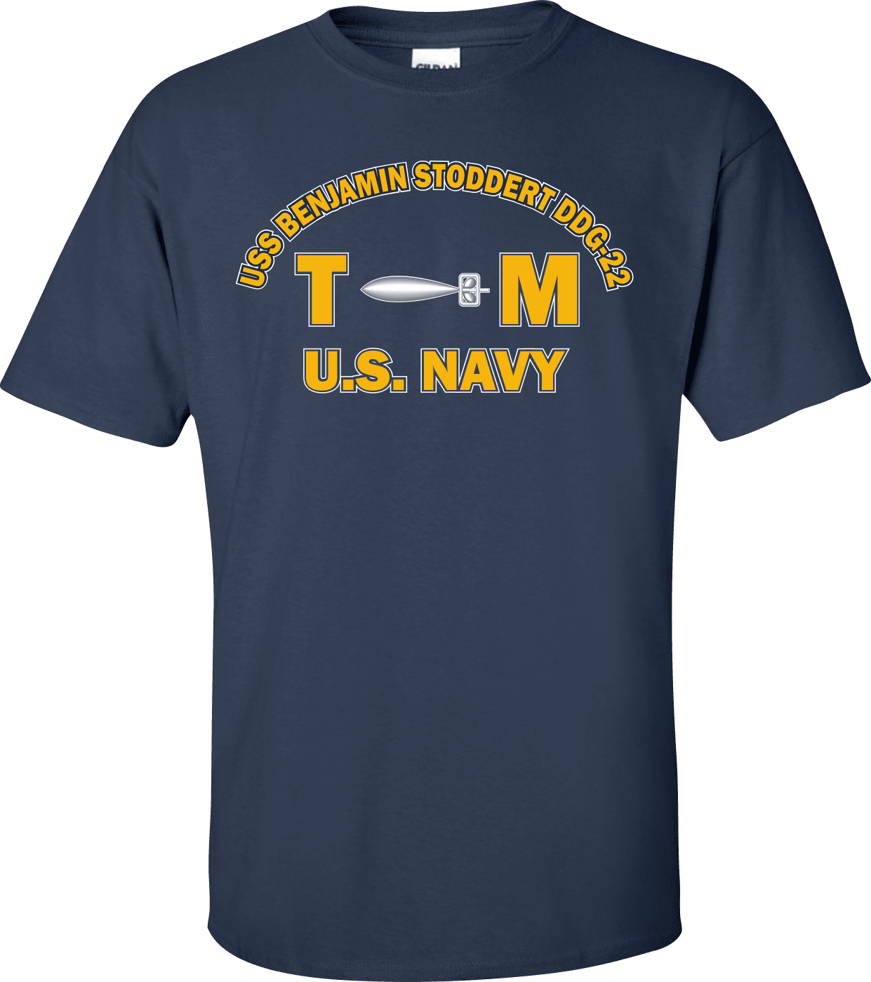 MilitaryBest is proud to offer this USS BENJAMIN STODDERT DDG-22 Rate TM Torpedomans Mate T-Shirt. This shirt is available as a 100% cotton t-shirt or a 100% polyester men’s or women’s moisture wicking t-shirt. Each shirt is proudly printed in the USA.
