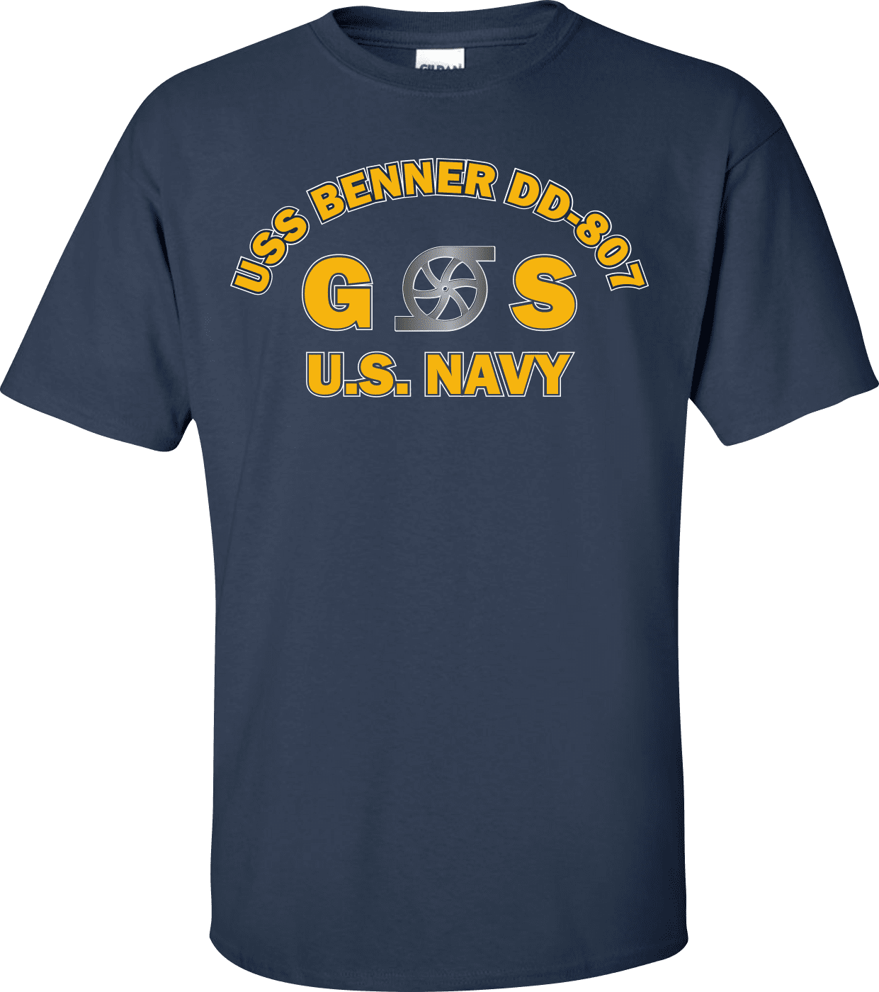 MilitaryBest is proud to offer this USS BENNER DD-807 Rate GS Gas Turbine System Technician T-Shirt. This shirt is available as a 100% cotton t-shirt or a 100% polyester men’s or women’s moisture wicking t-shirt. Each shirt is proudly printed in the USA.