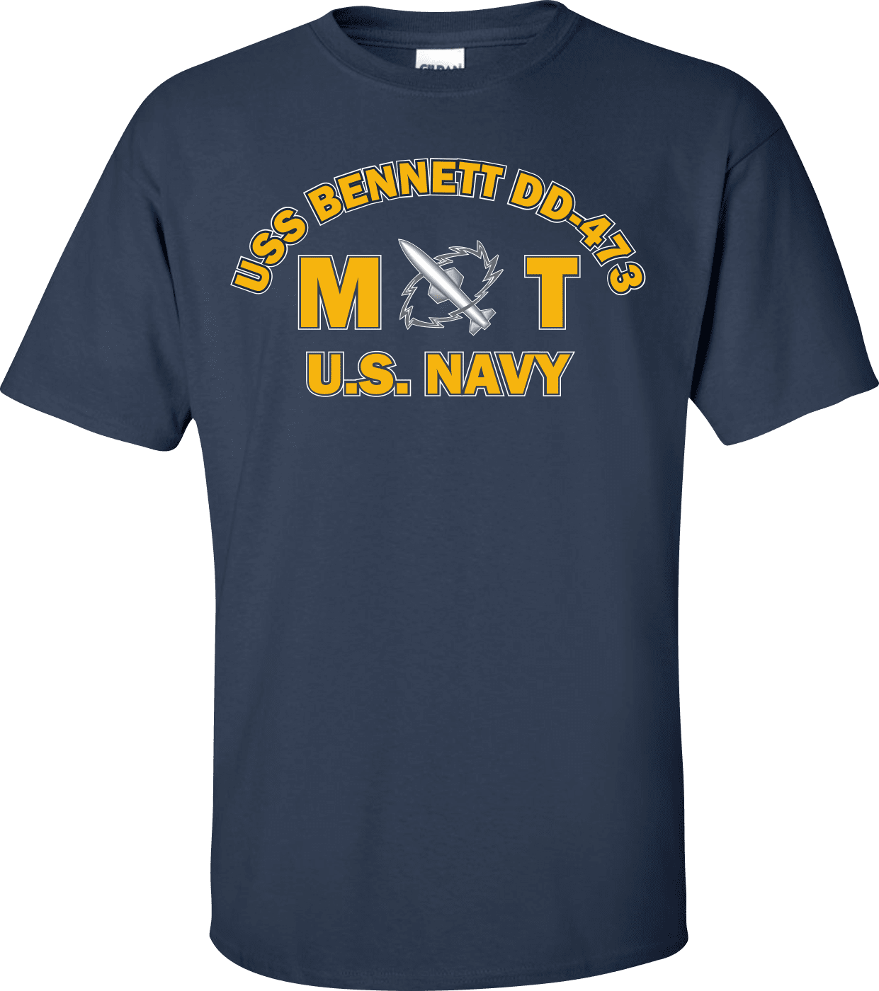 MilitaryBest is proud to offer this USS BENNETT DD-473 Rate MT Missile Technician T-Shirt. This shirt is available as a 100% cotton t-shirt or a 100% polyester men’s or women’s moisture wicking t-shirt. Each shirt is proudly printed in the USA.