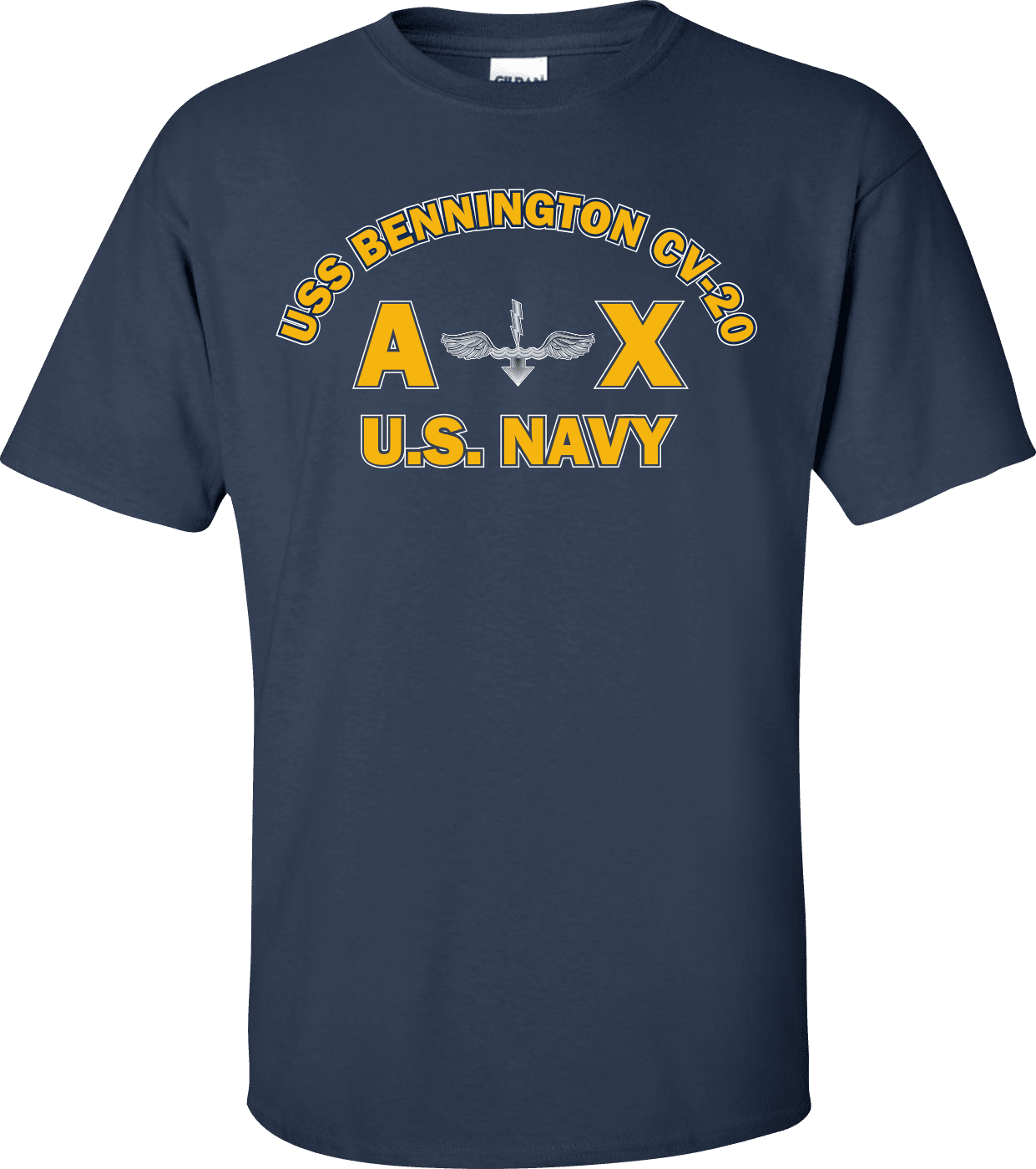 MilitaryBest is proud to offer this USS BENNINGTON CV-20 Rate AX Antisubmarine Warfare Technician T-Shirt. This shirt is available as a 100% cotton t-shirt or a 100% polyester men’s or women’s moisture wicking t-shirt. Each shirt is proudly printed in the USA.