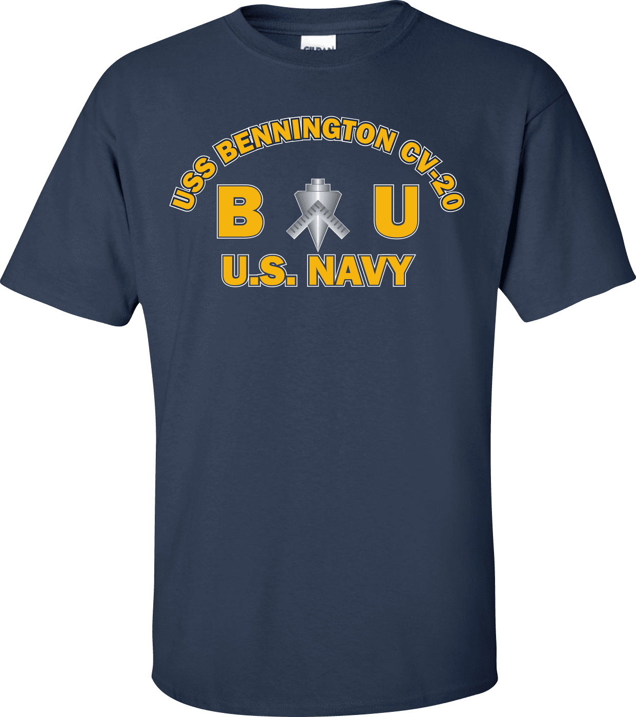 MilitaryBest is proud to offer this USS BENNINGTON CV-20 Rate BU Builder T-Shirt. This shirt is available as a 100% cotton t-shirt or a 100% polyester men’s or women’s moisture wicking t-shirt. Each shirt is proudly printed in the USA.