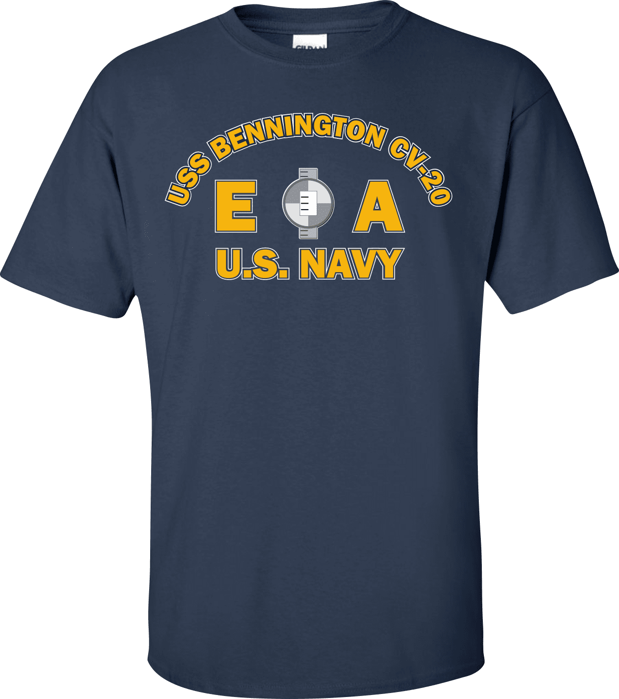 MilitaryBest is proud to offer this USS BENNINGTON CV-20 Rate EA Engineering Aide T-Shirt. This shirt is available as a 100% cotton t-shirt or a 100% polyester men’s or women’s moisture wicking t-shirt. Each shirt is proudly printed in the USA.