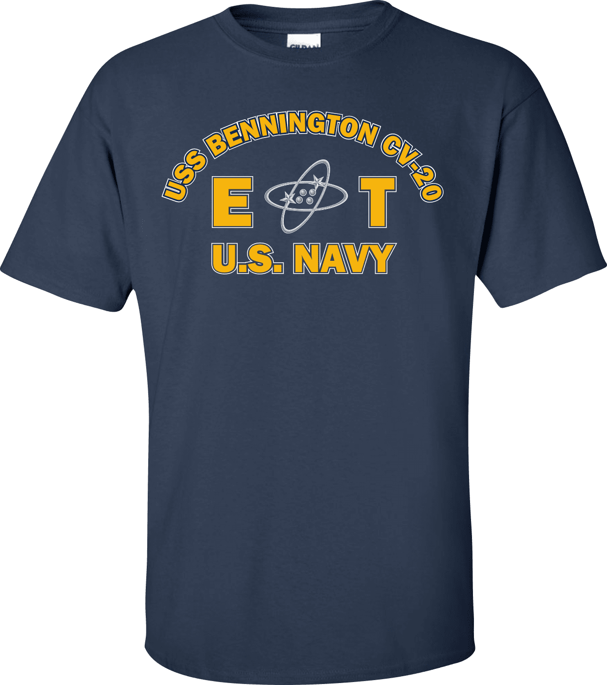 MilitaryBest is proud to offer this USS BENNINGTON CV-20 Rate ET Electronics Technician T-Shirt. This shirt is available as a 100% cotton t-shirt or a 100% polyester men’s or women’s moisture wicking t-shirt. Each shirt is proudly printed in the USA.
