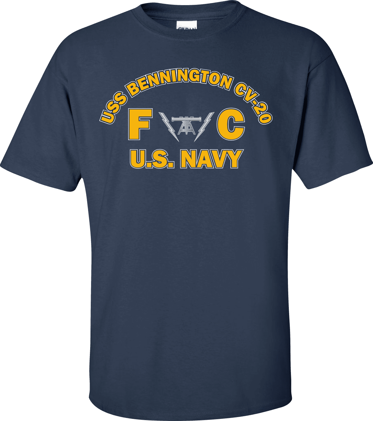 MilitaryBest is proud to offer this USS BENNINGTON CV-20 Rate FC Fire Controlman T-Shirt. This shirt is available as a 100% cotton t-shirt or a 100% polyester men’s or women’s moisture wicking t-shirt. Each shirt is proudly printed in the USA.