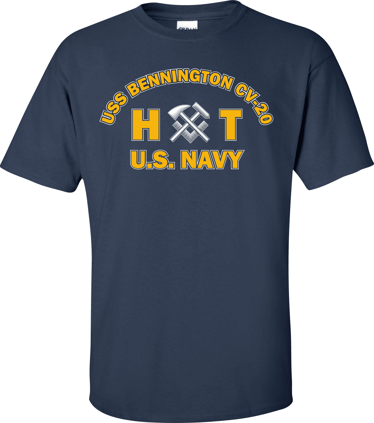 MilitaryBest is proud to offer this USS BENNINGTON CV-20 Rate HT Hull Maintenance Technician T-Shirt. This shirt is available as a 100% cotton t-shirt or a 100% polyester men’s or women’s moisture wicking t-shirt. Each shirt is proudly printed in the USA.