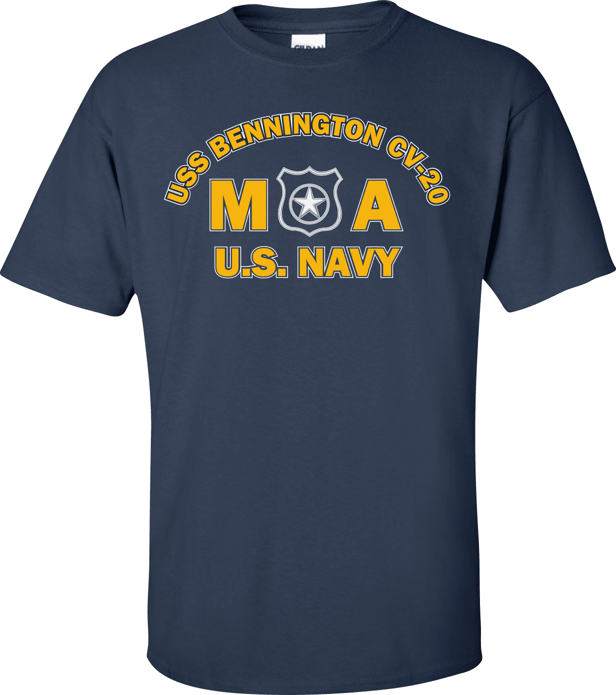 MilitaryBest is proud to offer this USS BENNINGTON CV-20 Rate MA Master At Arms T-Shirt. This shirt is available as a 100% cotton t-shirt or a 100% polyester men’s or women’s moisture wicking t-shirt. Each shirt is proudly printed in the USA.