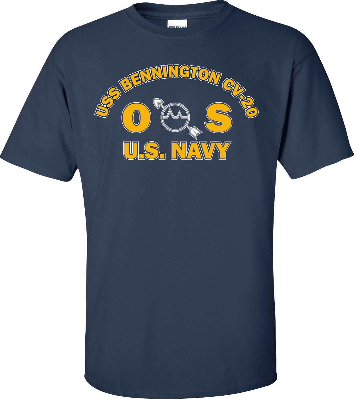 MilitaryBest is proud to offer this USS BENNINGTON CV-20 Rate OS Operations Specialist T-Shirt. This shirt is available as a 100% cotton t-shirt or a 100% polyester men’s or women’s moisture wicking t-shirt. Each shirt is proudly printed in the USA.