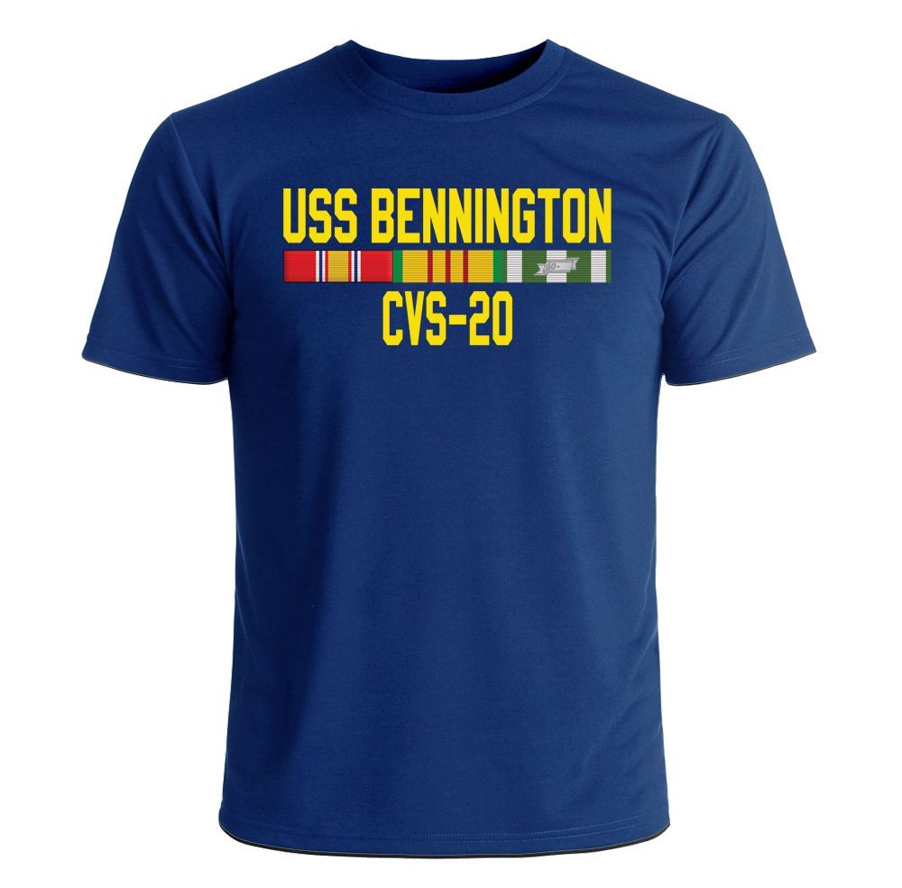 MilitaryBest is proud to offer this U.S. Navy Ship Vietnam Printed T-Shirt. Each design is offered on a Navy Blue T-Shirt. This USS Bennington CVS-20 With Vietnam Service Ribbons T-Shirt is proudly printed in the USA. The quality of all of our Military products is guaranteed. Unless there is a defect in workmanship or material, this shirt is unreturnable.A percentage of the sale of each MilitaryBest item is forwarded to the licensing departments of each respective branch of service in support of the MWR (Morale, Welfare, & Recreation) program. These payments are made by either ALL4U LLC or the wholesaler from where the item originated. Our team thanks you for your service and your support of these programs.