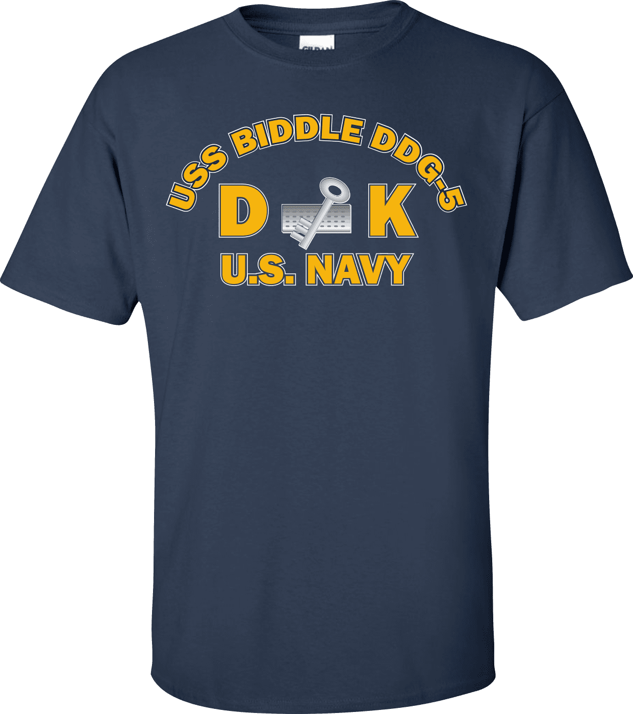 MilitaryBest is proud to offer this USS BIDDLE DDG-5 Rate DK Disbursing Clerk T-Shirt. This shirt is available as a 100% cotton t-shirt or a 100% polyester men’s or women’s moisture wicking t-shirt. Each shirt is proudly printed in the USA.