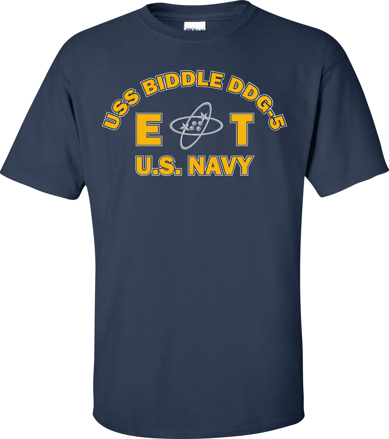 MilitaryBest is proud to offer this USS BIDDLE DDG-5 Rate ET Electronics Technician T-Shirt. This shirt is available as a 100% cotton t-shirt or a 100% polyester men’s or women’s moisture wicking t-shirt. Each shirt is proudly printed in the USA.