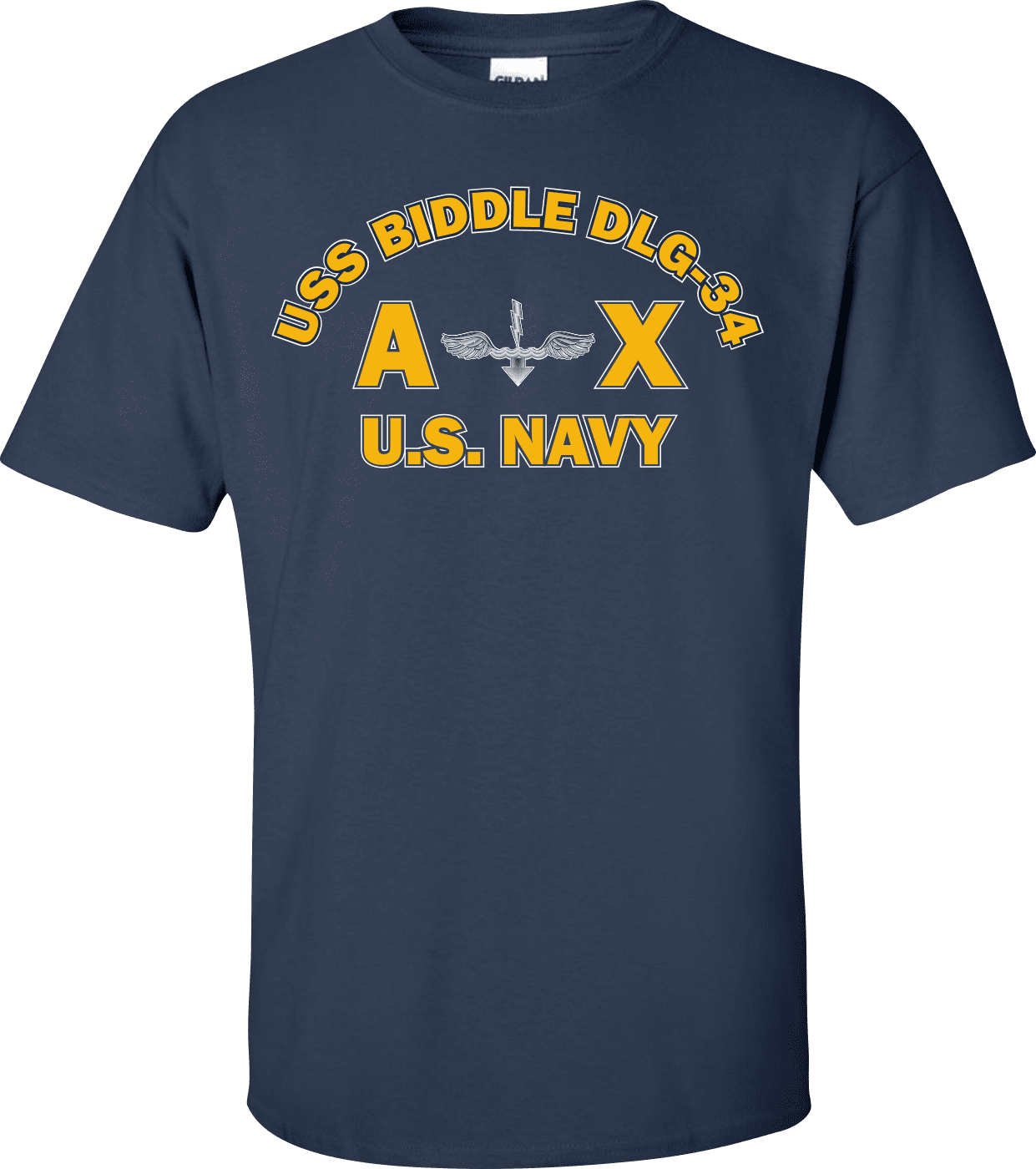 MilitaryBest is proud to offer this USS BIDDLE DLG-34 Rate AX Antisubmarine Warfare Technician T-Shirt. This shirt is available as a 100% cotton t-shirt or a 100% polyester men’s or women’s moisture wicking t-shirt. Each shirt is proudly printed in the USA.